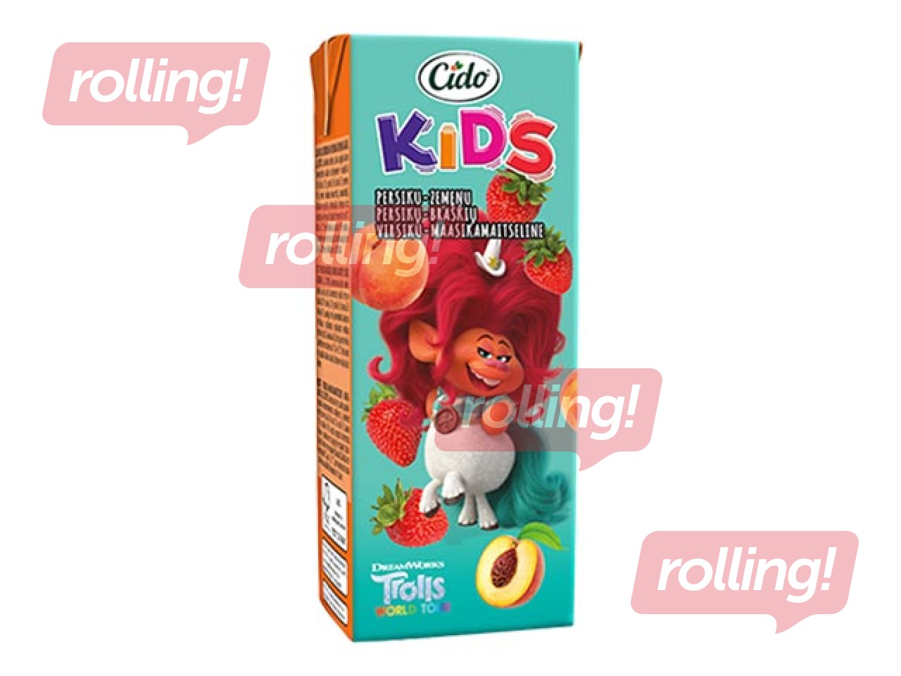 Sulas dzēriens Cido Troļļi persiku-zemeņu, 200ml