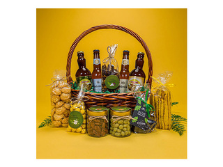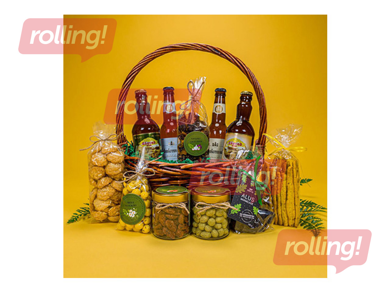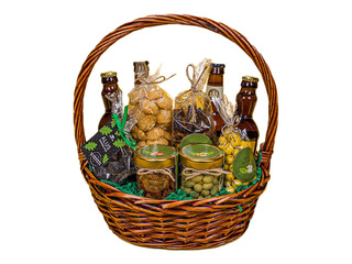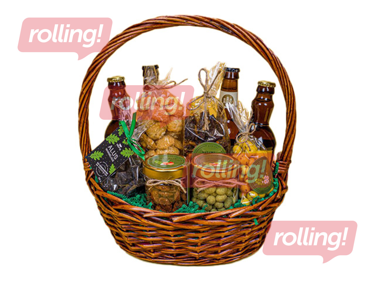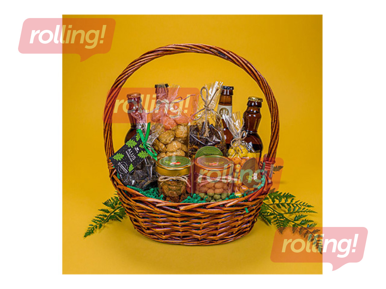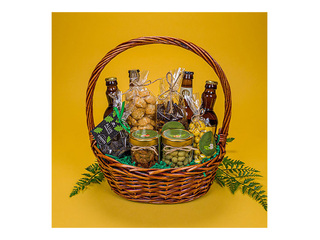 Brūns dāvanu grozs, garums 28cm; augstums 30cm.