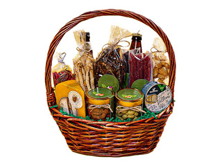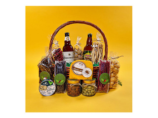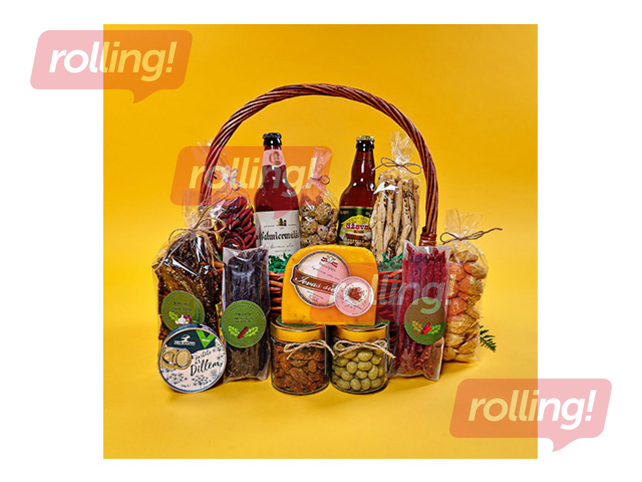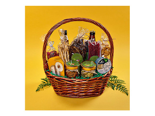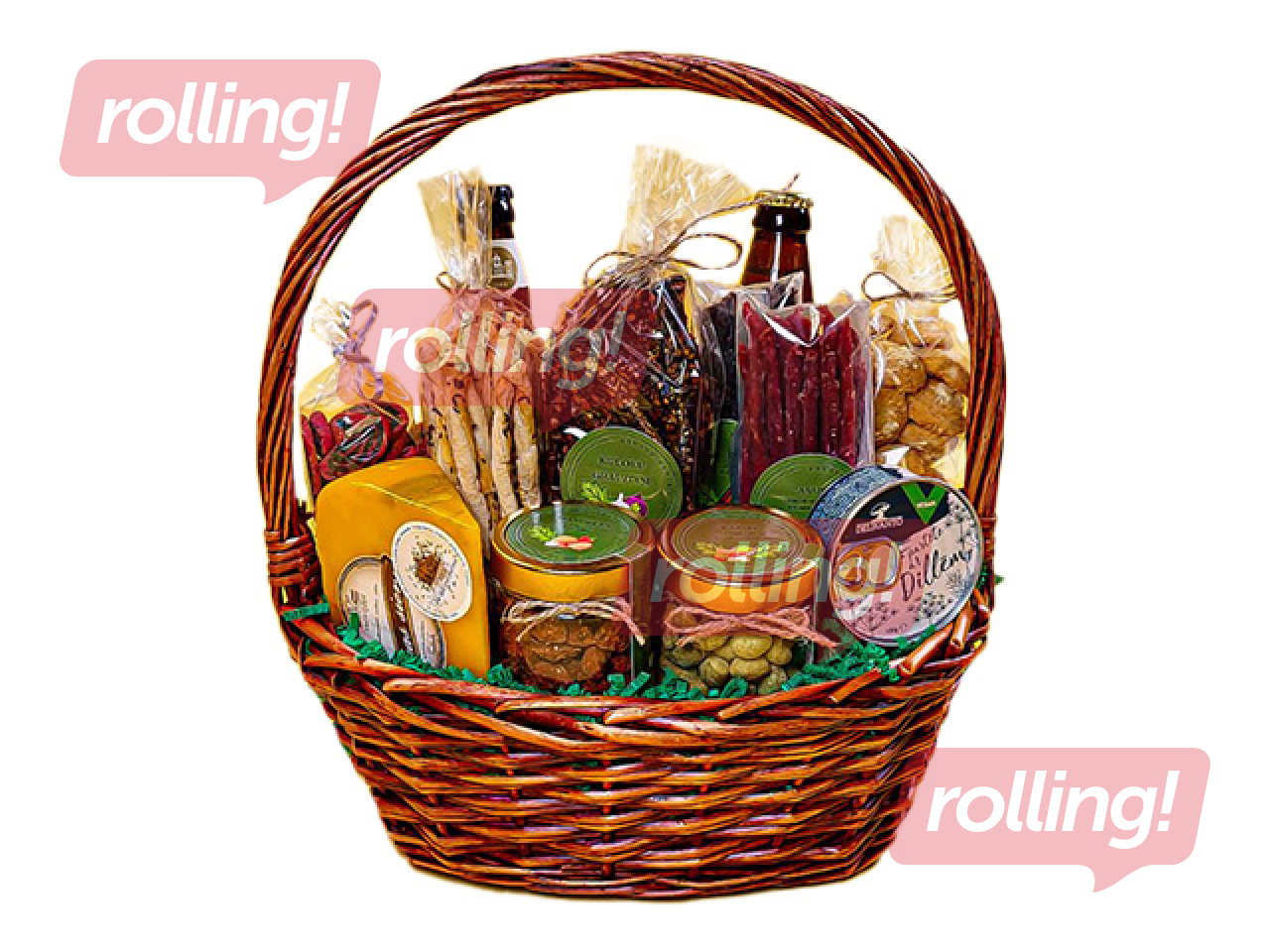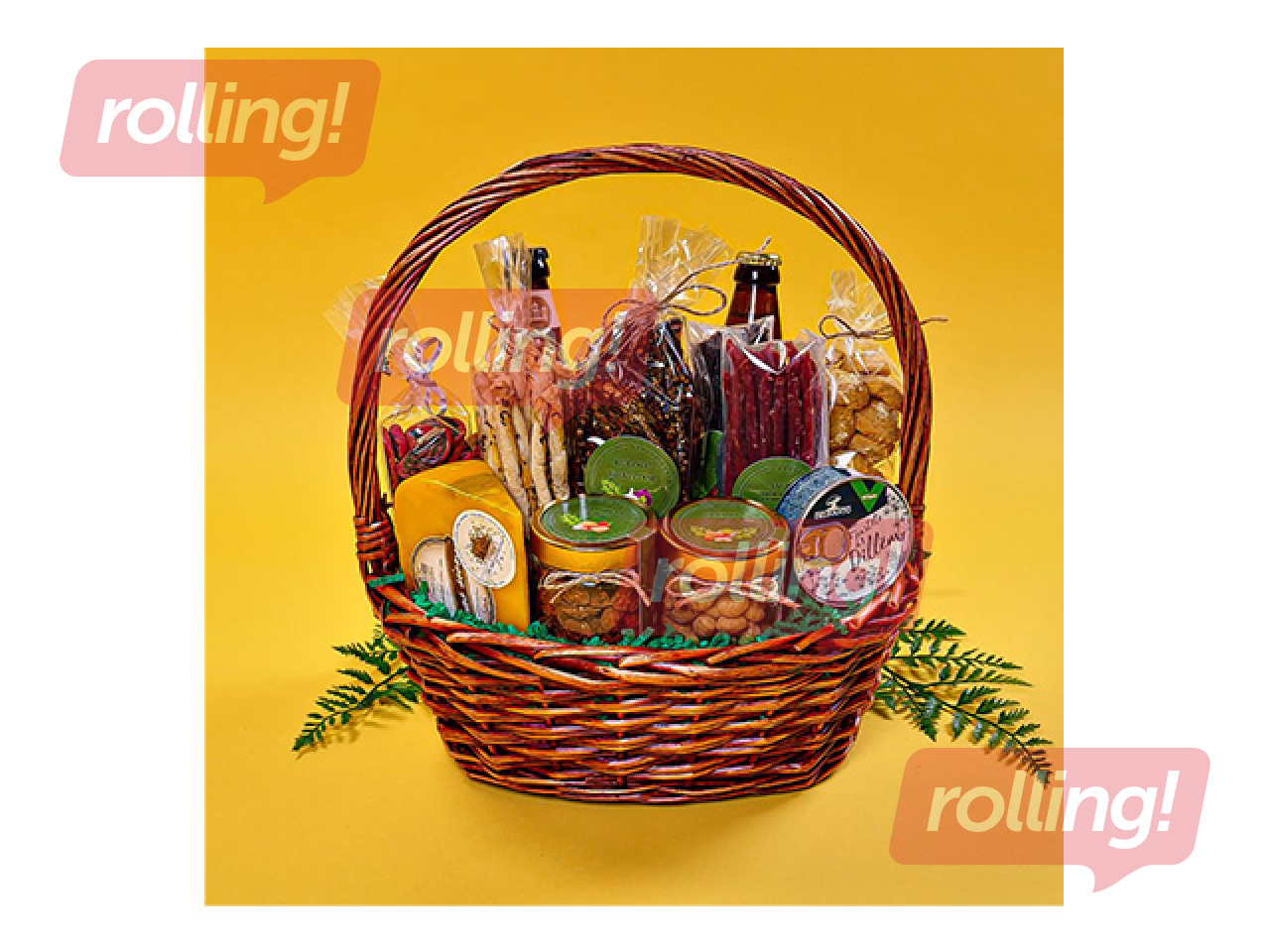 Brūns dāvanu grozs, garums 28cm; augstums 30cm.