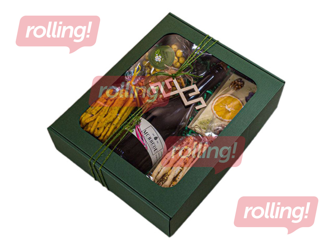 Zaļa dāvanu kaste ar logu, 340x280x85mm.