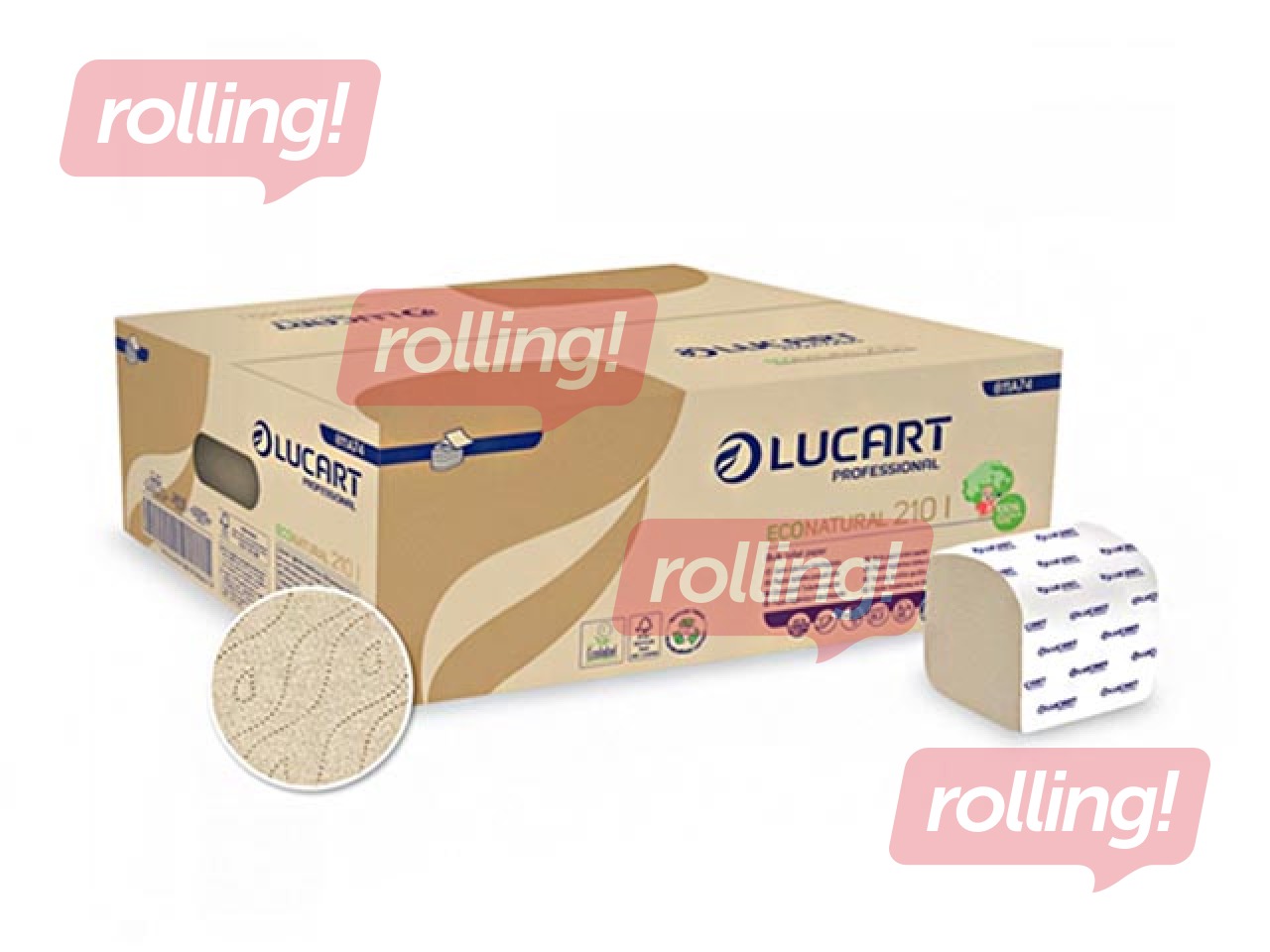 Eco Natural Lucart produkti tiek izgatavoti, pārstrādājot celulozes šķiedras, kas atrodamas dzērienu kartona kārbās.