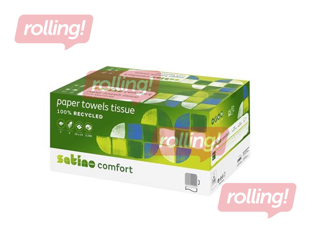 Papīra dvieļi loksnēs Wepa Satino Comfort V-locījums, H3, 20 paciņas, 2 slāņi, balti