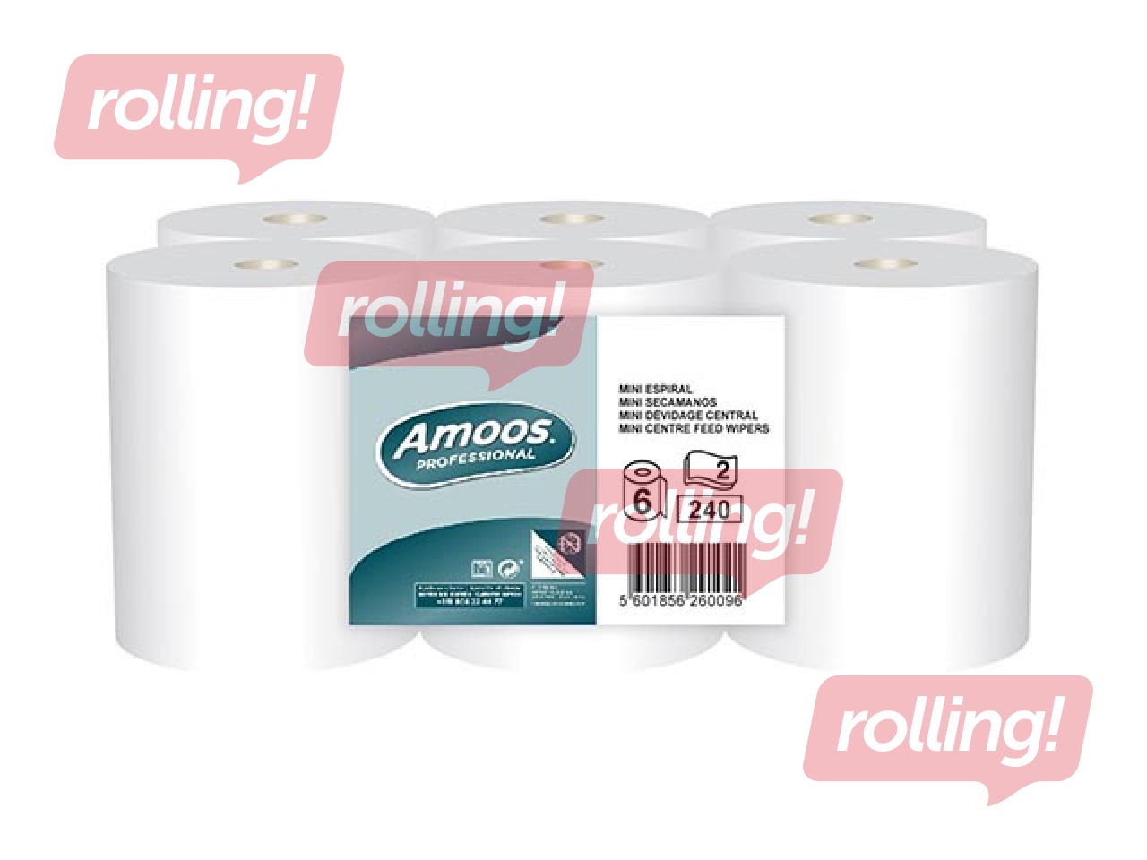 Papīra dvieļi ruļļos Amoos mini Centerfeed, M1, 2 slāņi, 6 ruļļi, 60m
