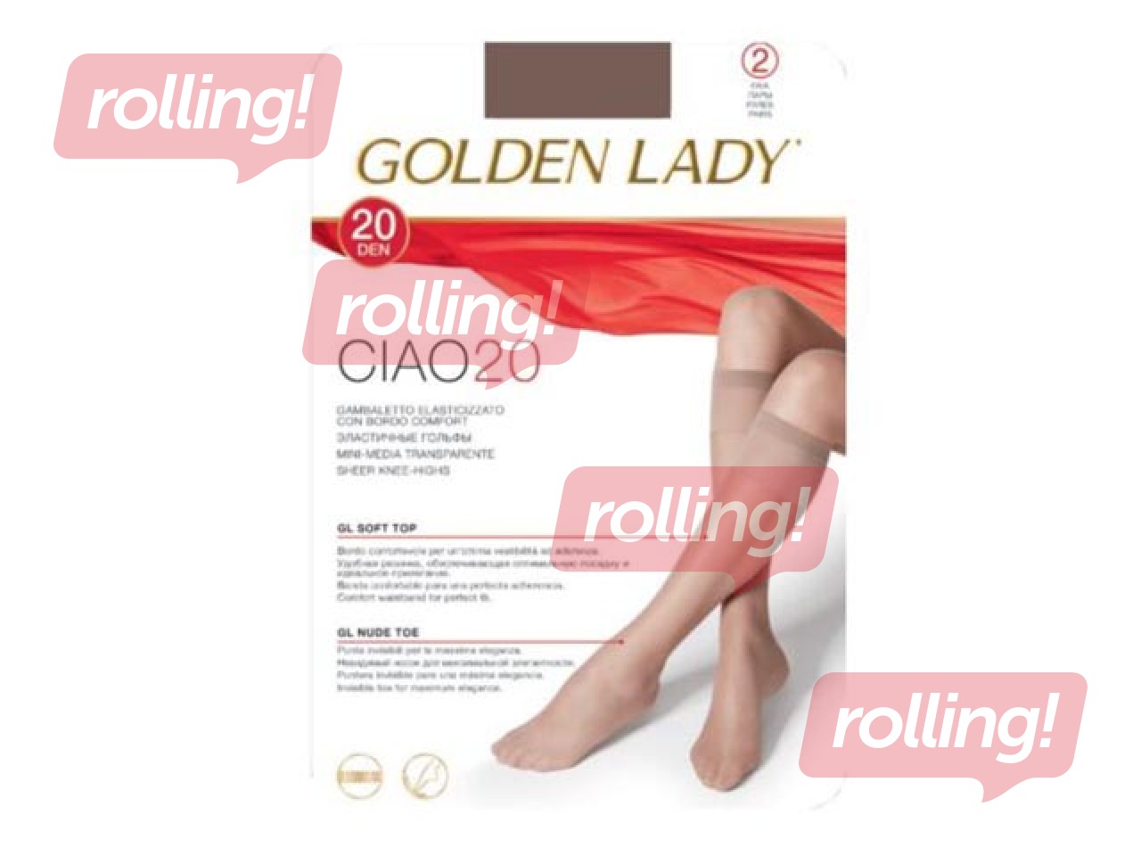 Sieviešu pusgarās zeķes, Ciao, Golden Lady, 20 den, Melon, 2 pāri