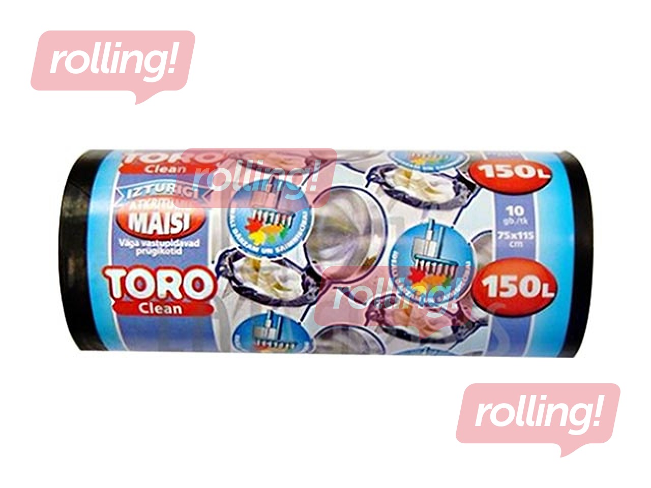Atkritumu maisi TORO, tilpums 150 l, biezums 35 mikr., 10 gab. rullī, melnā krāsā, ruļļa svars 707 grami.