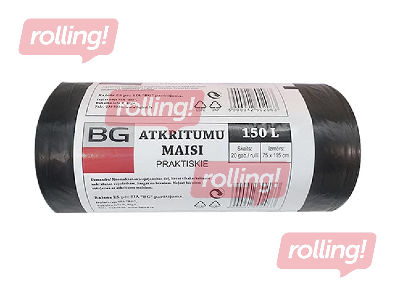 Atkritumu maisi BG Praktiskie, 75 x 115 cm, 150 l, 20 gab., melni