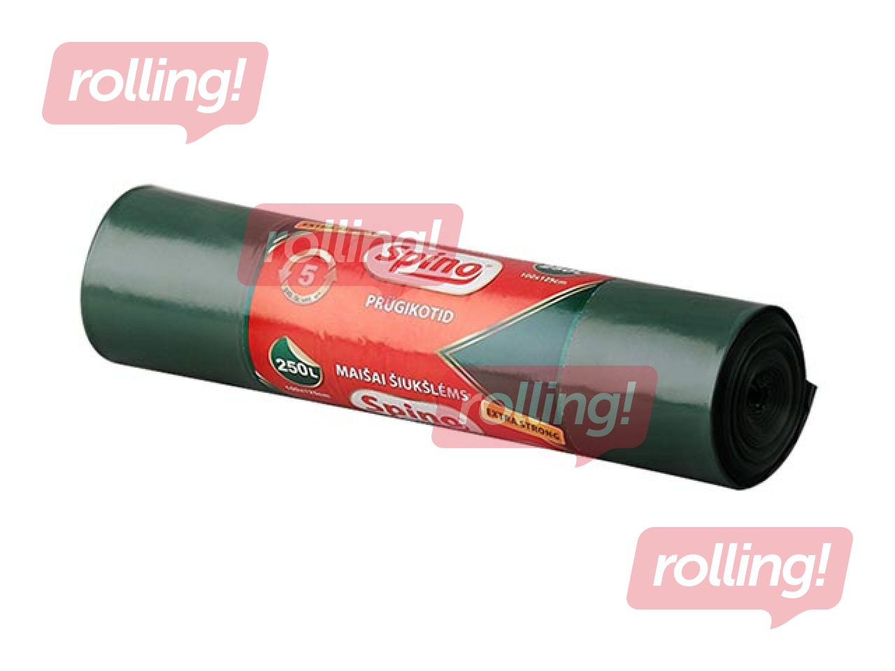 Zaļi atkritumu maisi SPINO, īpaši izturīgi, paredzēti būvgružiem un citiem smagiem atkritumiem.