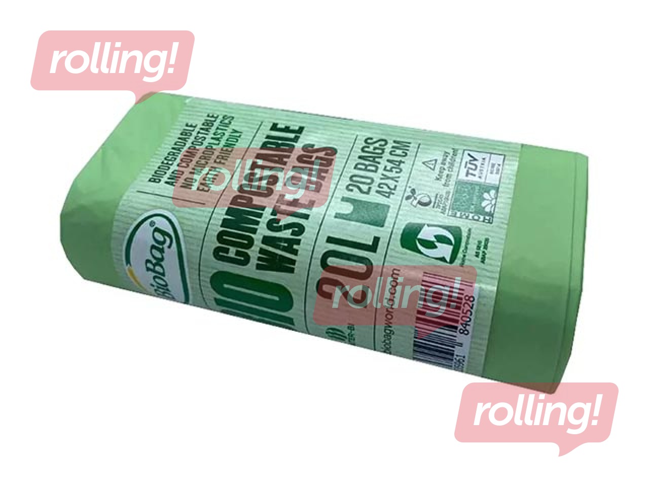 Biokompostējami maisiņi, BioBag, virtuves pārtikas konteineriem, 20l, 15 mikr., 20 gab.