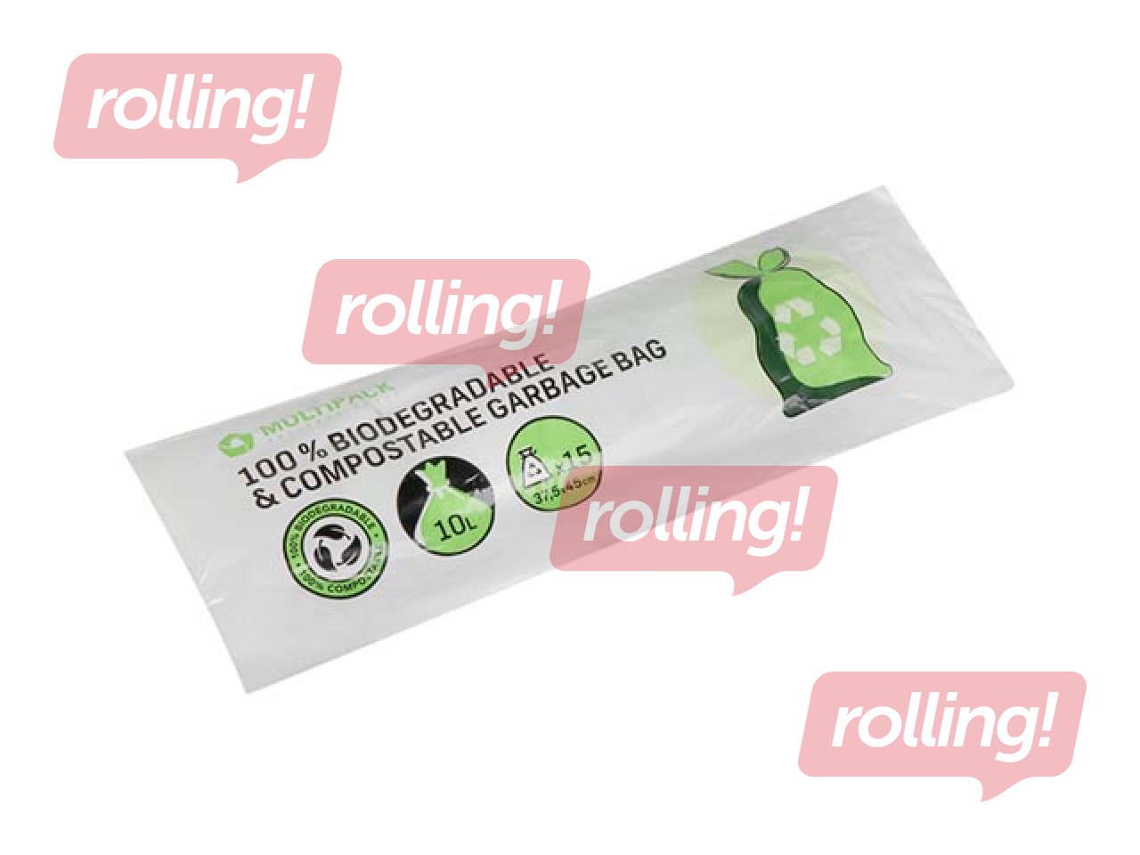 Biokompostējami atkritumu maisi BIO, zaļi, 10l, 18 mikr., 15 gab.