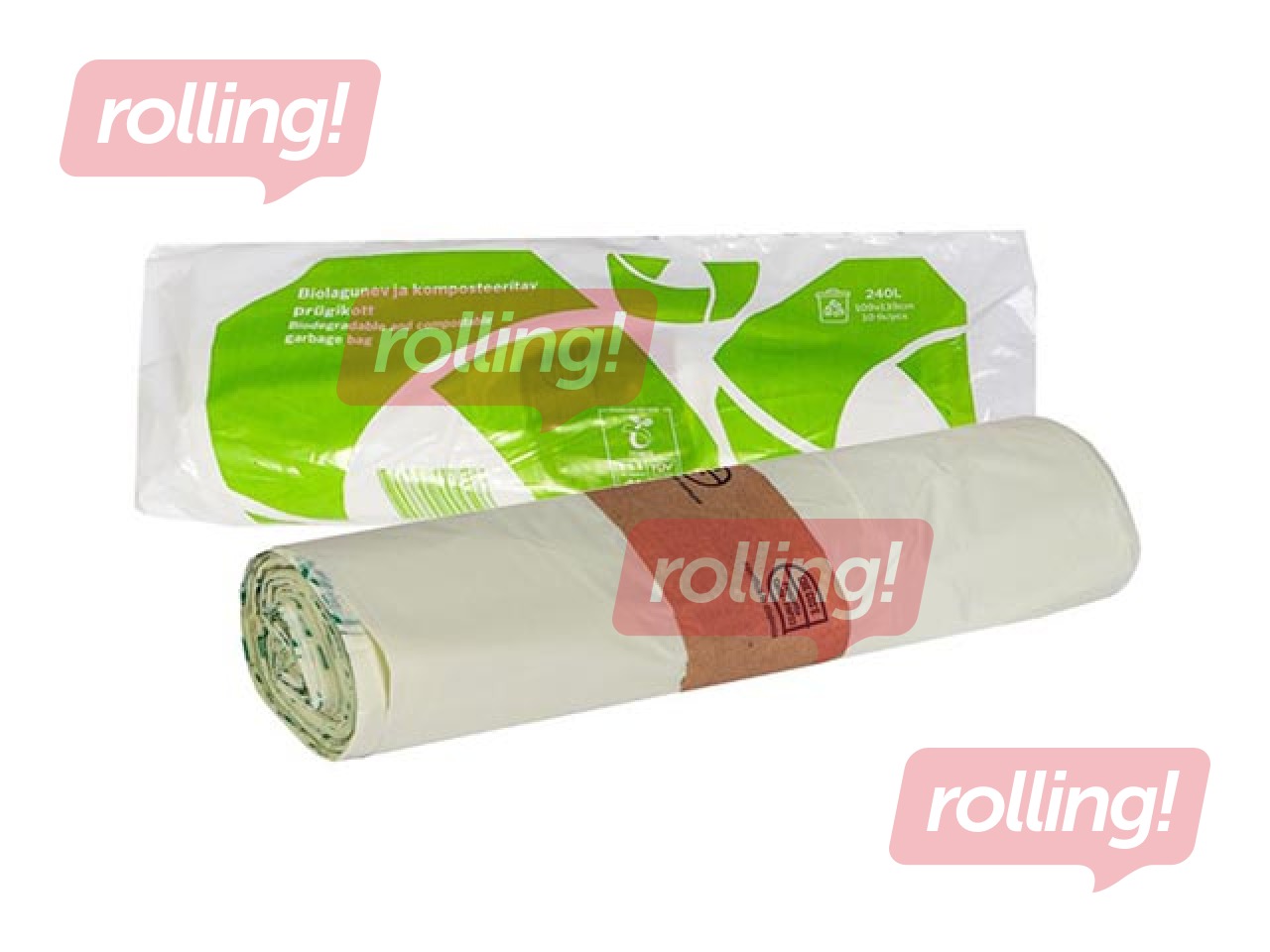 Pilnībā bioloģiski noārdāmi un kompostējami atkritumu maisi, kas piemēroti ļoti lielām 240 litru tvertnēm. Šie videi draudzīgie maisi ir izgatavoti no dabiskas izcelsmes polimēriem, kas balstīti uz kukurūzas cietes tehnoloģiju, nodrošinot ātru un efektīvu sadalīšanos.