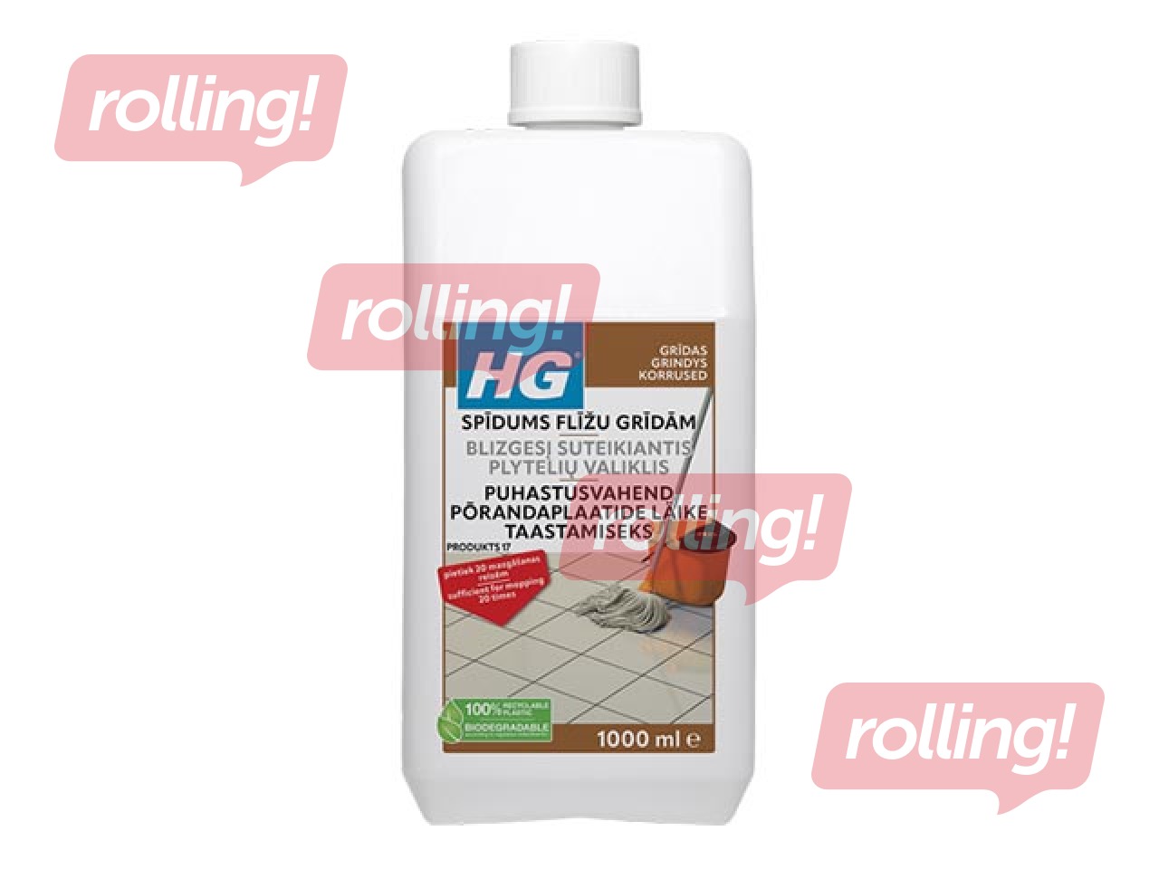 Šis flīžu spīduma atjaunotājs un tīrīšanas līdzeklis tika izstrādāts, lai regulāri, vienkārši un ātri notīrītu porainas un neporainas grīdas flīzes, akmens flīzes un kaļķi nesaturošas dabīgā akmens virmsasi. Šis flīžu spīduma atjaunotājs arī padziļina flīžu krāsu un stiprina struktūru. 1 l HG spīduma atjaunojotāja pietiek 20 mazgāšanas reizēm.