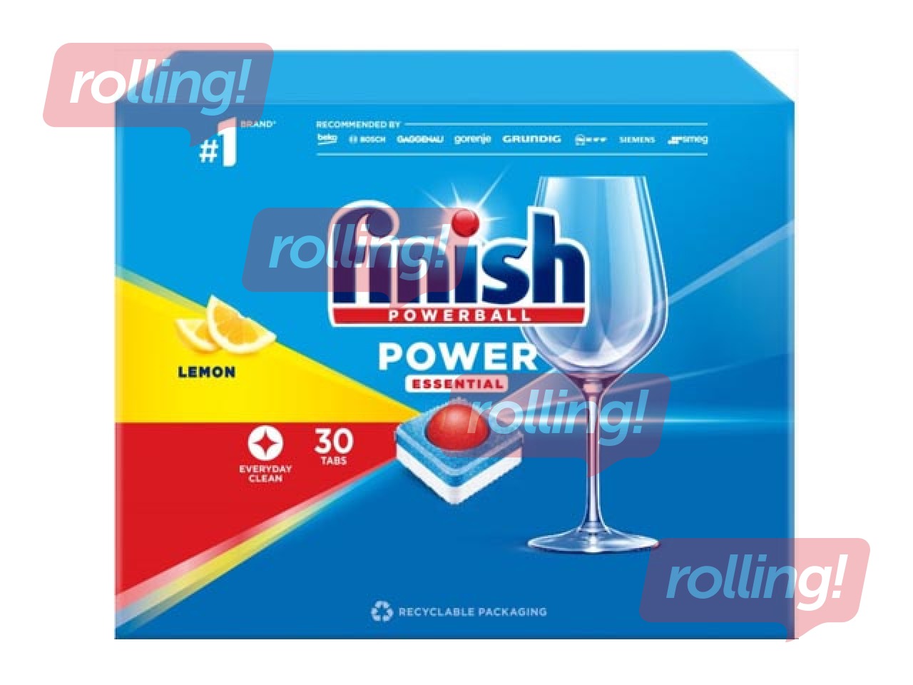 Finish Power Essential All in 1 tabletes nodrošina efektīvu trauku mazgāšanu, viegli noņemot pat grūti notīrāmus netīrumus un saglabājot trauku tīrību ikdienā. Citrona aromāts nodrošina patīkamu svaigumu pēc mazgāšanas.