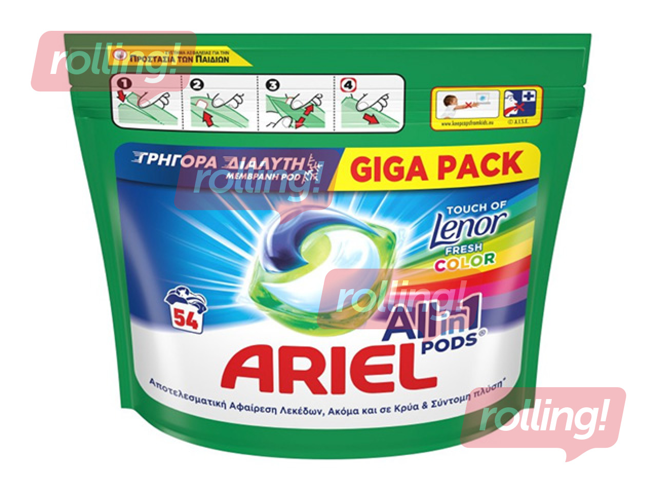 Veļas mazgāšanas kapsulas, Ariel All-in-1, Touch of Lenor, Color, 54 gab.