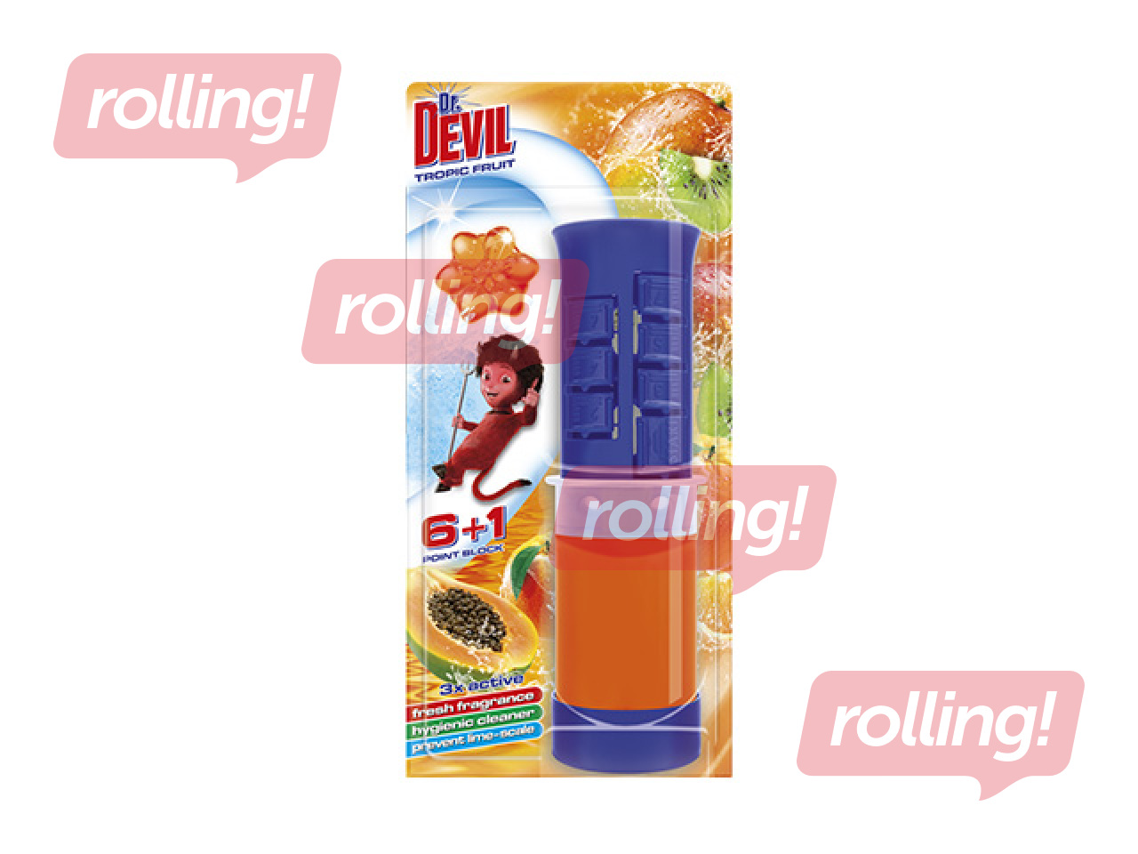 Tualetes poda tīrītājs un atsvaidzinātājs,Dr.Devil, ar dozatoru, Tropic Fruit, 7gab.