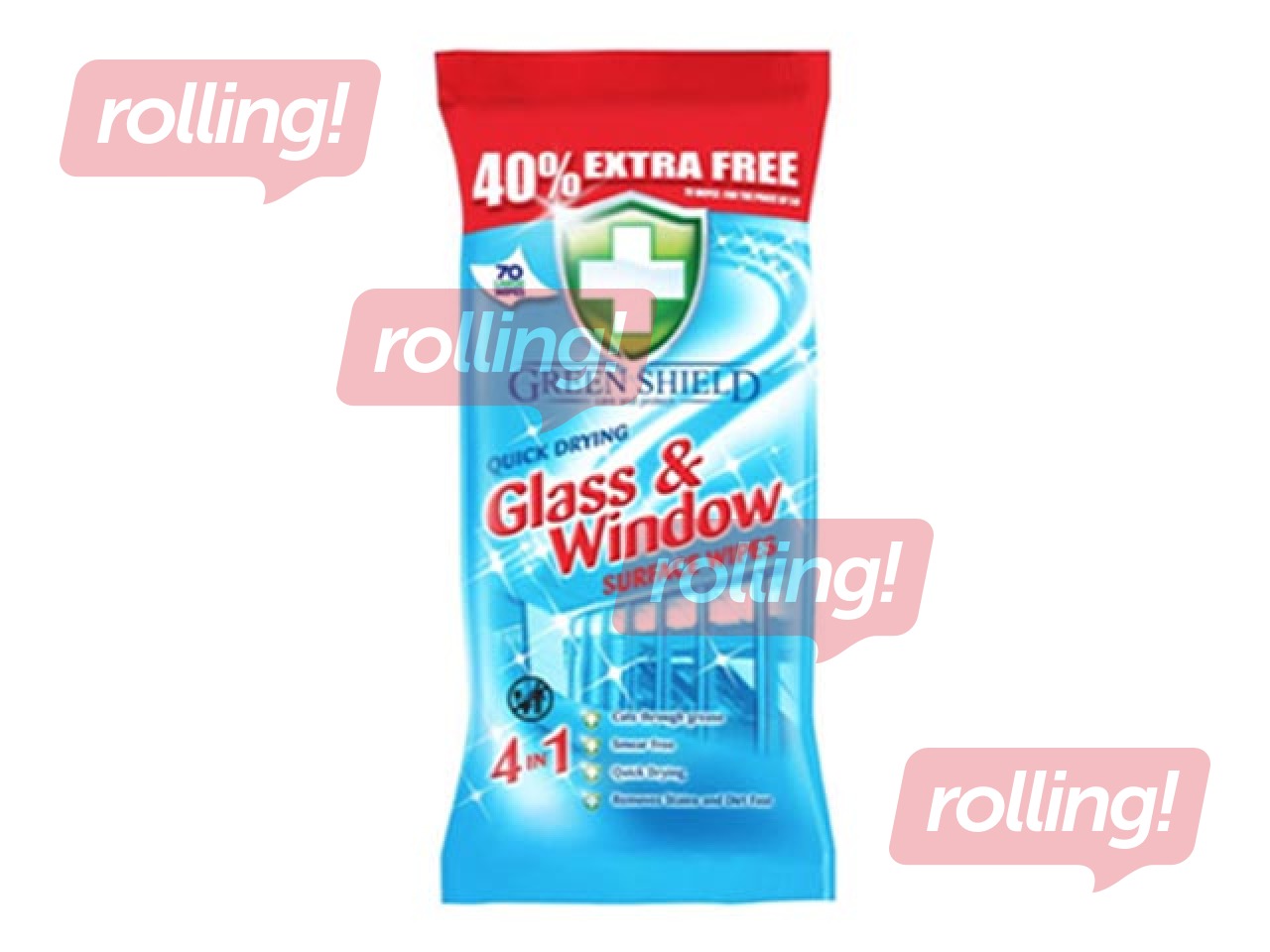 Mitrās salvetes stiklam un logiem, Green Shield, 70 gab.