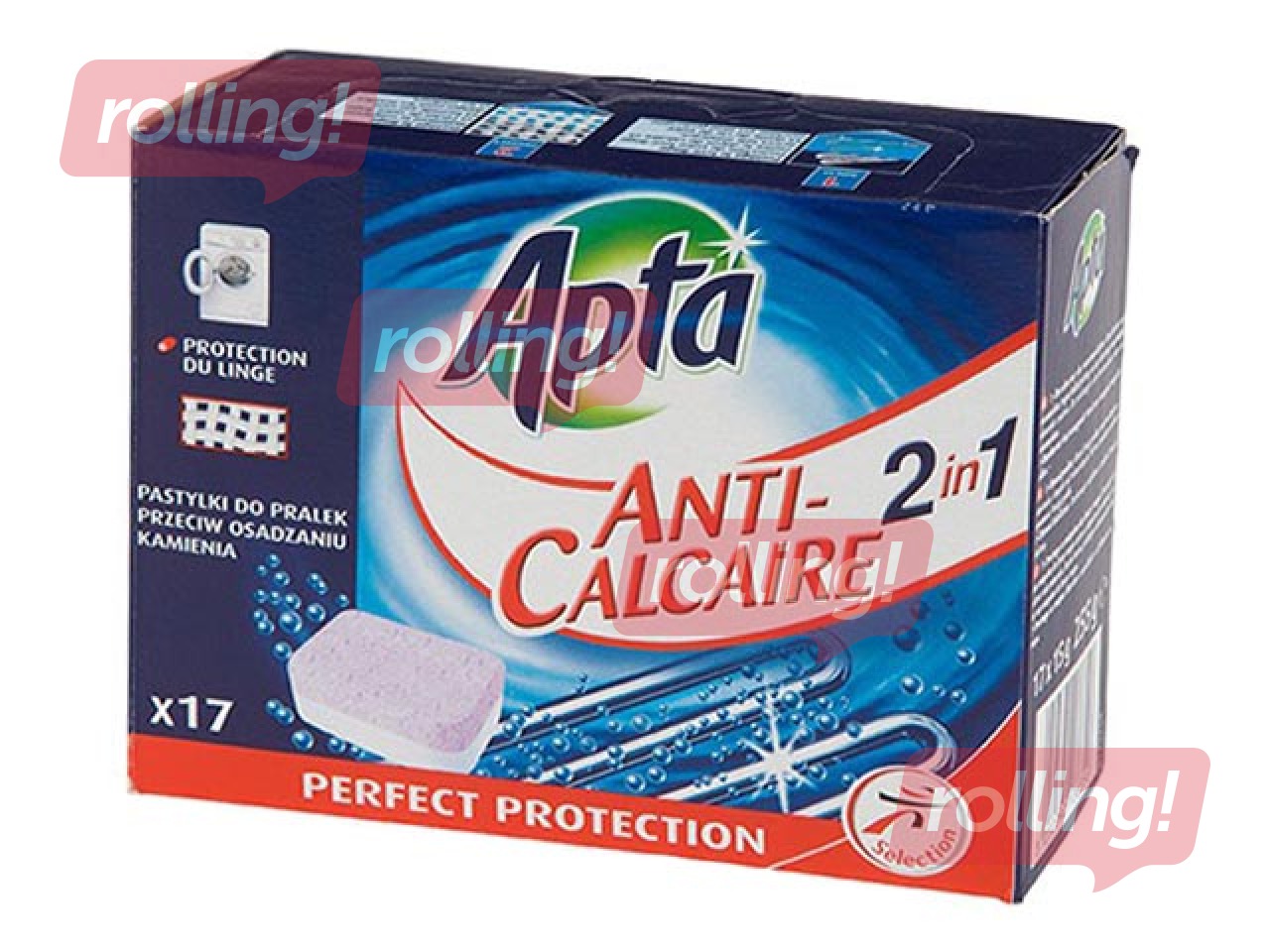 Ūdens mīkstinošās atkalķošanas tabletes veļas mašīnai 2in1, Apta, 17 gab.