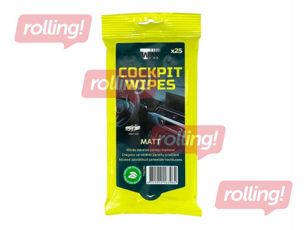 Mitrās salvetes T-Way, New Car, Matt, auto paneļu kopšanai, 25 gab.