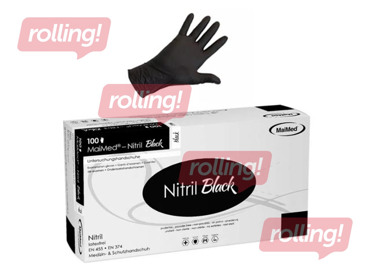 Cimdi nitrila bez pūdera MaiMed L, 100 gab., melnie
