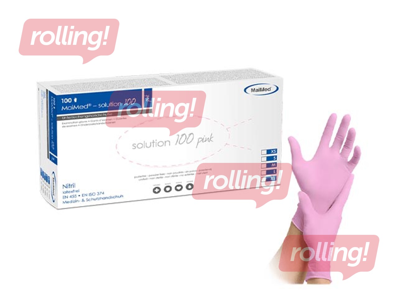 Cimdi nitrila, teksturēti, SolutionPink, M izmērs, rozā, 100 gab