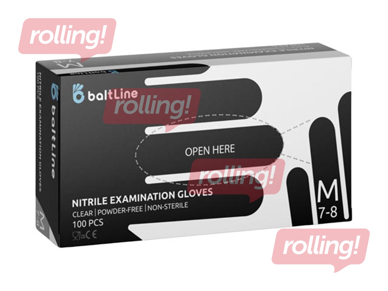 Cimdi nitrila bez pūdera BaltLine M izmērs, 100 gab., melnie