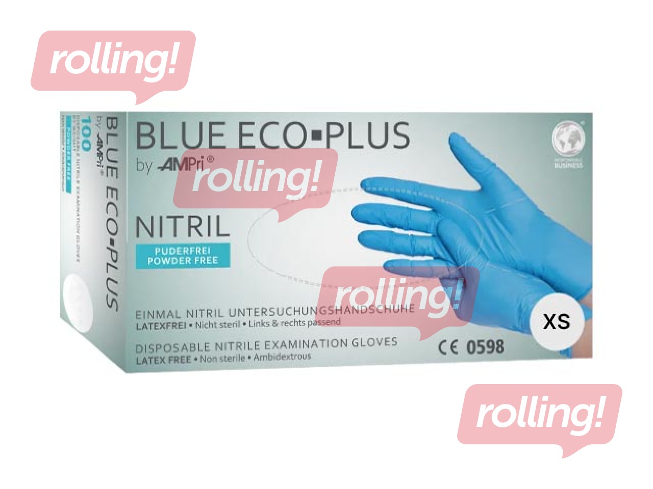 Nitrila cimdi, nepūderēti, AMPri, XS izmērs, zili, 100 gab.