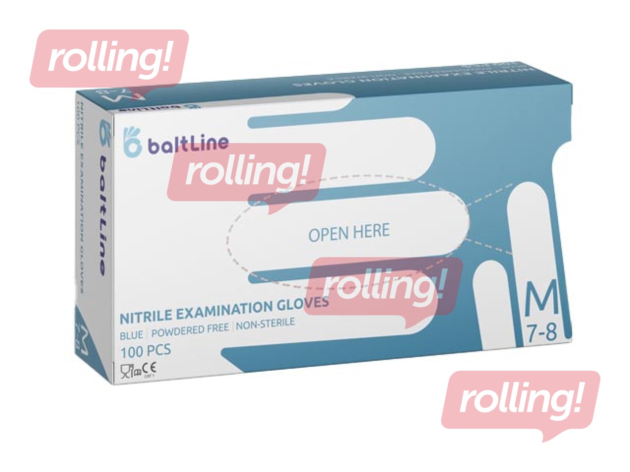Cimdi BaltLine, nitrila, bez pūdera, zili, M izmērs, 100 gab.