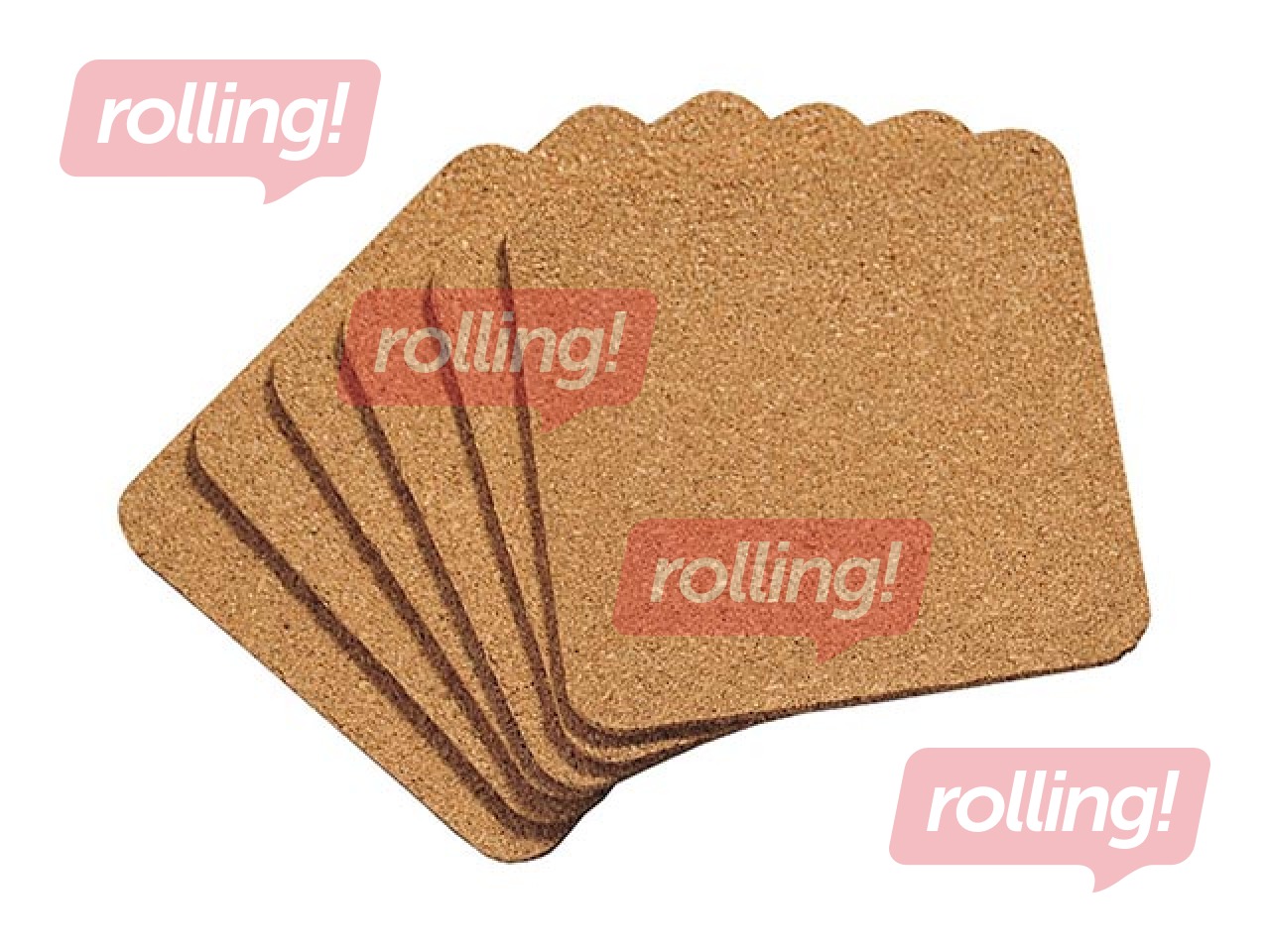 Krūzīšu paliktņu komplekts no korķa. Paliktņa izmērs 10x10cm, biezums 3mm. Komplektā 6 gab.