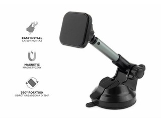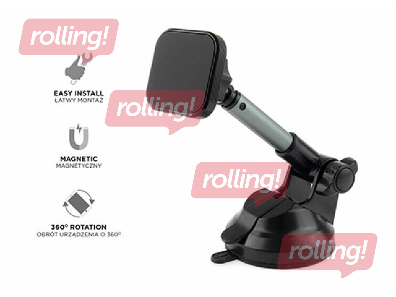 Telefona turētāju ir iespējams pagriezt par 255°. Komplektā iekļautas divas metāla plāksnītes, kuras var ievietot starp telefonu un aizsargmaciņu.