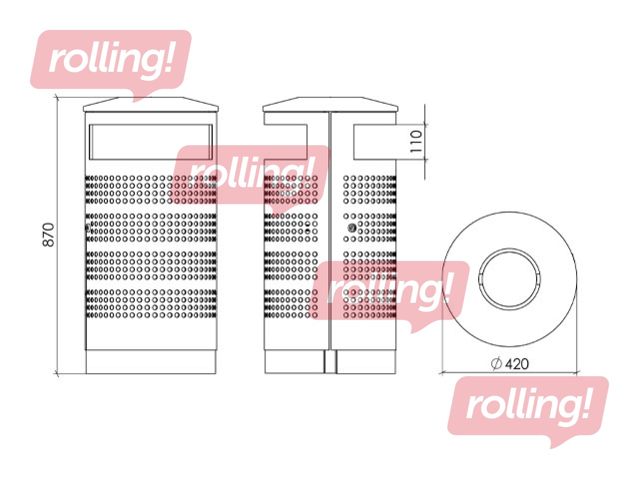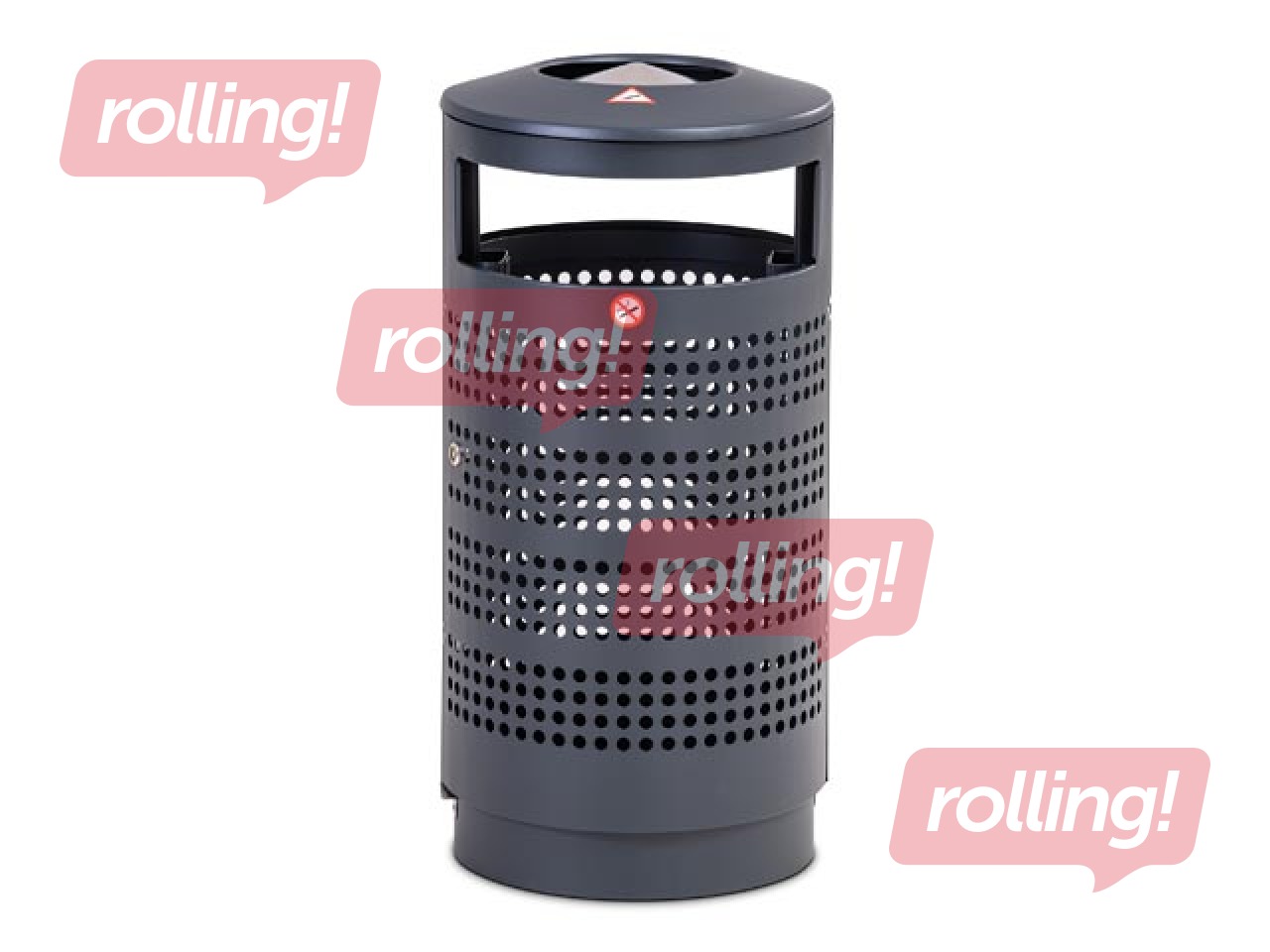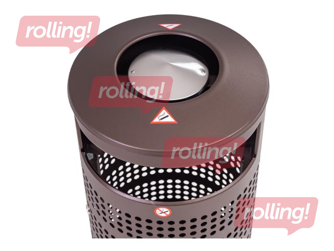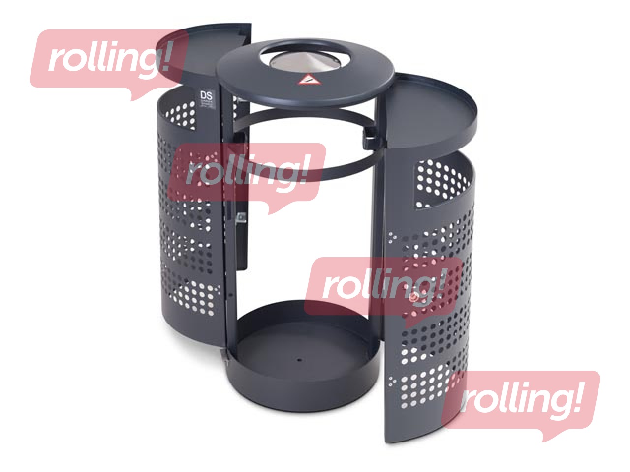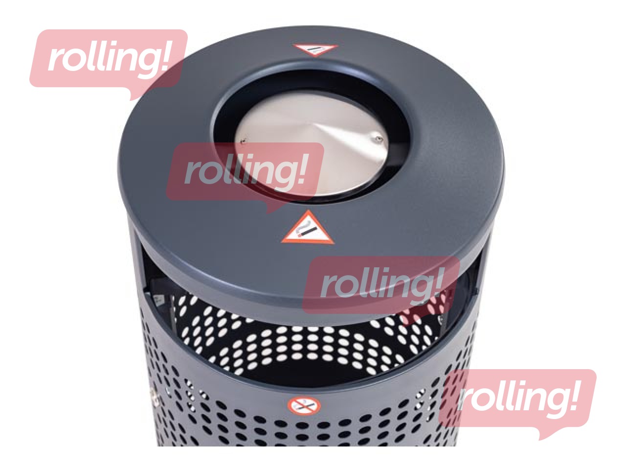 Šī daudzfunkcionālā atkritumu tvertne ir aprīkota ar ugunsdrošu pelnu trauku augšpusē, nodrošinot drošību un ērtu izmantošanu vietās, kur tiek smēķēts. Tvertnei ir divpusējas durvis ar perforāciju, kas ne tikai nodrošina estētisku izskatu, bet arī ventilāciju. Iekšpusē atrodas cinkots spainis, kas ir izturīgs pret koroziju un atvieglo tvertnes tīrīšanu. Kopējais tilpums ir 70 litri, kas padara to piemērotu gan iekštelpām, gan ārtelpām, piemēram, birojiem, sabiedriskām vietām vai atpūtas zonām.