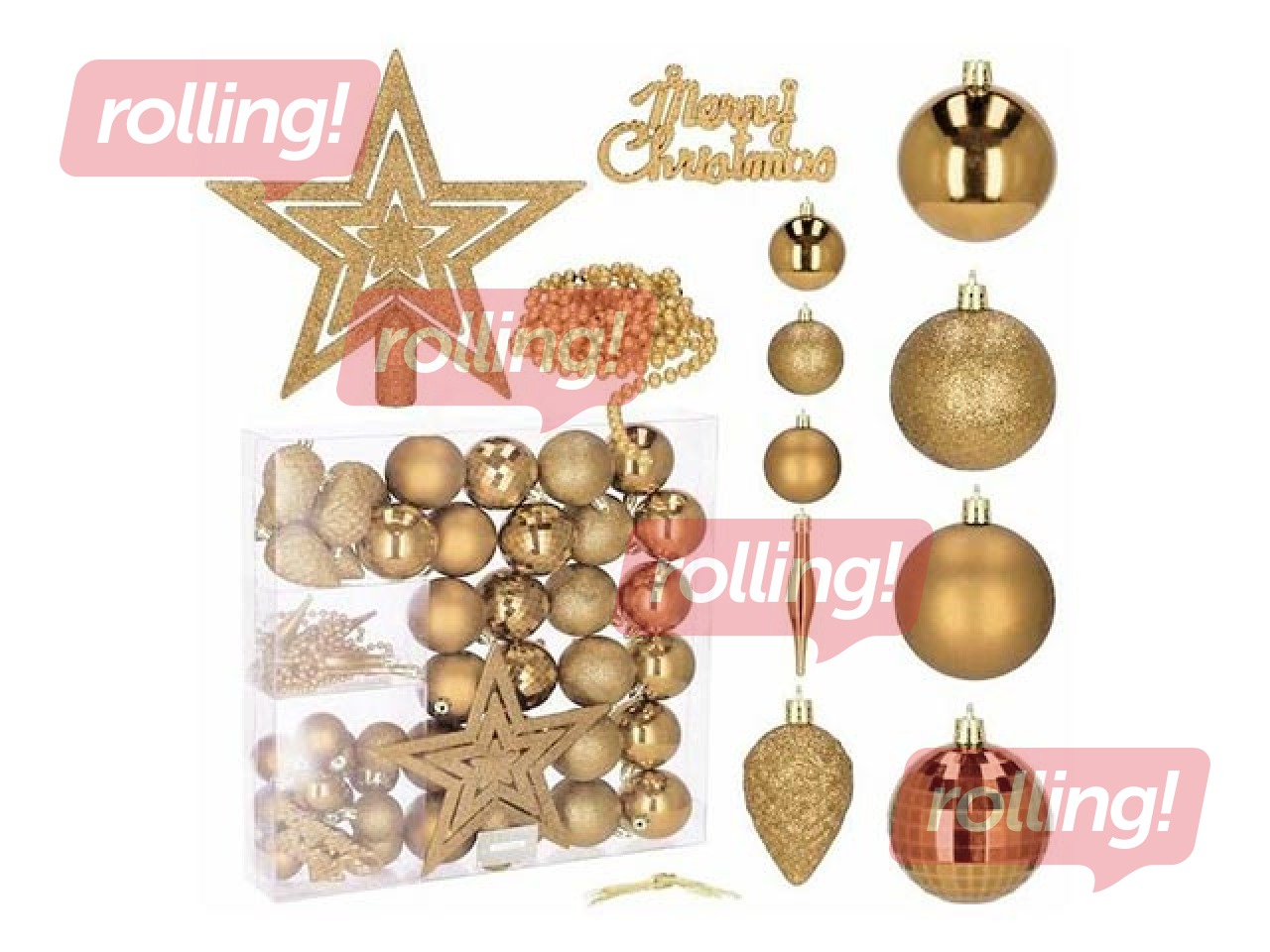 Ziemassvētku eglītes rotājumi Springos, zelta, 51 gab.