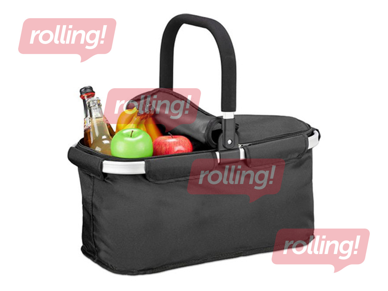 Praktisks un daudzpusīgs salokāms grozs ar vieglu alumīnija rāmi un mīkstu, polsterētu rokturi ērtai nēsāšanai. Lieliski piemērots iepirkumiem, kempingiem, piknikiem vai ceļojumiem. Izgatavots no izturīga poliestera un aprīkots ar vāku ar rāvējslēdzēju.
