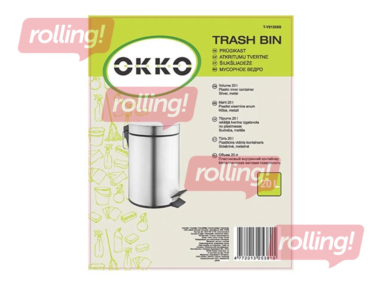 Atkritumu tvertne ar pedāli Okko, nerūsējoša, tērauda, 20l