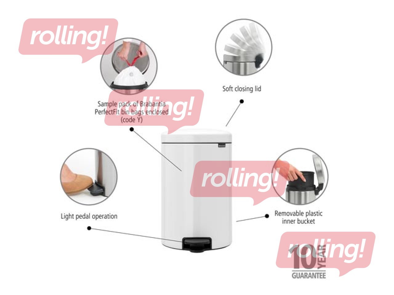 Meklējat ideālu atkritumu tvertni virtuvei vai jebkurai citai telpai? Izmēģiniet Brabantia NewIcon pedāļa tvertni ar 20 litru tilpumu – īstu universālu risinājumu. Šī ar mūsdienīgu dizainu veidotā tvertne atveras higiēniski ar vieglu pēdas pieskārienu, cieši aizveras un novērš nepatīkamu aromātu izplatīšanos. Turklāt tai ir neslīdošs pamats, pretapgāšanās aizsardzība un ikonisks izskats.