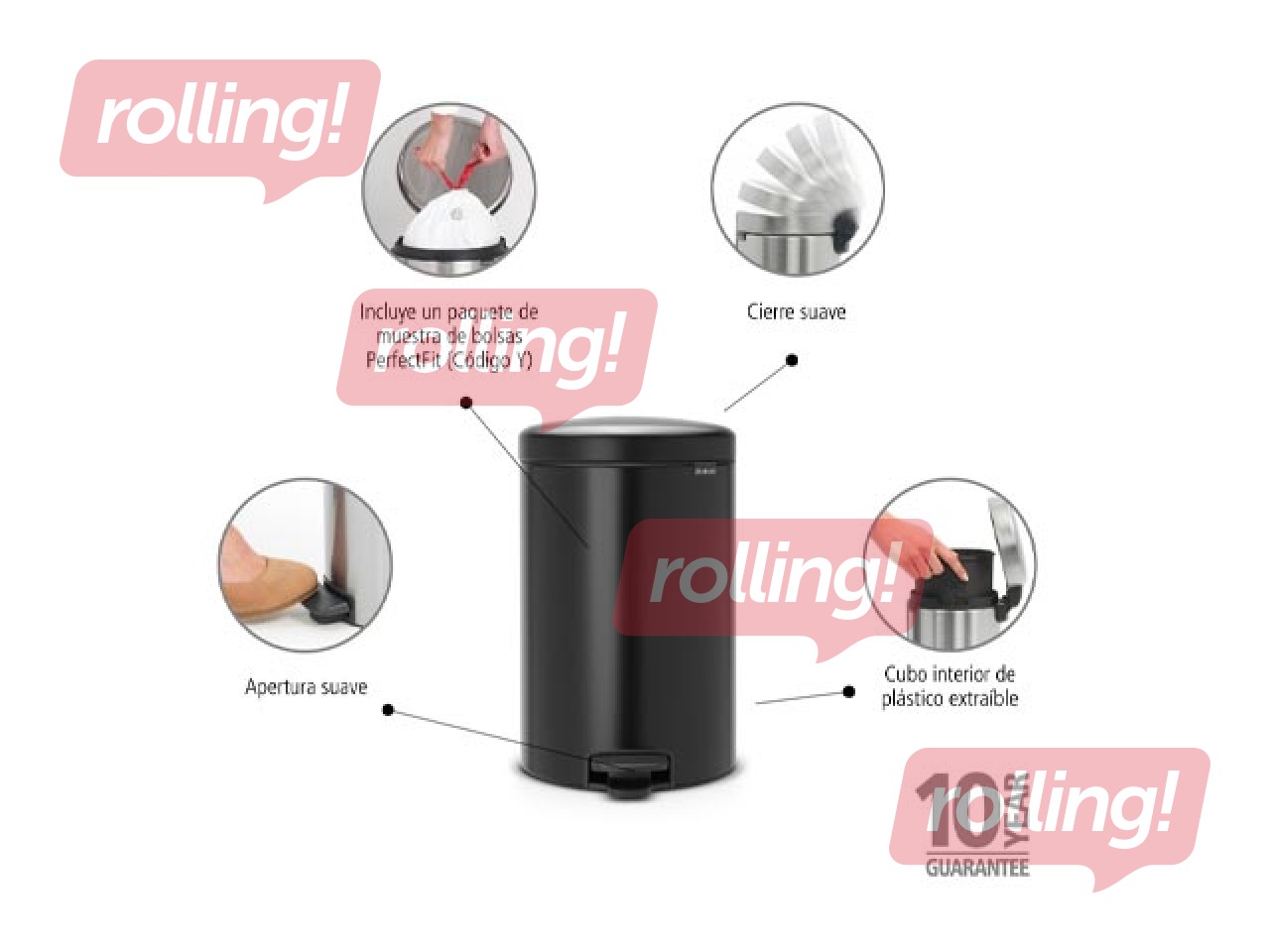 Meklējat ideālu atkritumu tvertni virtuvei vai jebkurai citai telpai? Izmēģiniet Brabantia NewIcon pedāļa tvertni ar 20 litru tilpumu – īstu universālu risinājumu. Šī ar mūsdienīgu dizainu veidotā tvertne atveras higiēniski ar vieglu pēdas pieskārienu, cieši aizveras un novērš nepatīkamu aromātu izplatīšanos. Turklāt tai ir neslīdošs pamats, pretapgāšanās aizsardzība un ikonisks izskats.