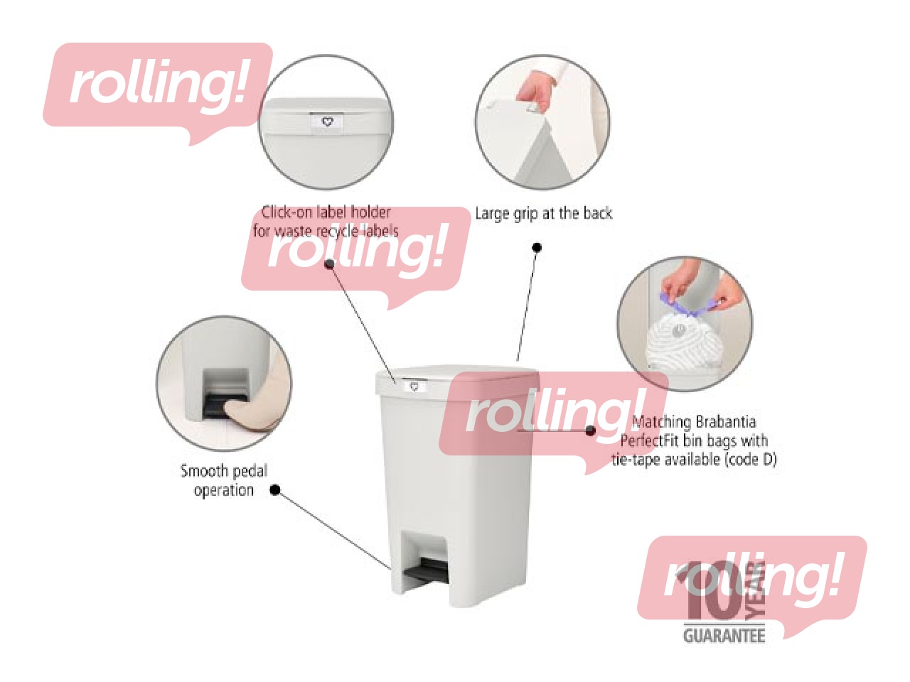 • Bez liekiem pārklājumiem – sader ar Brabantia PerfectFit maisiņiem ar sasienamo lenti