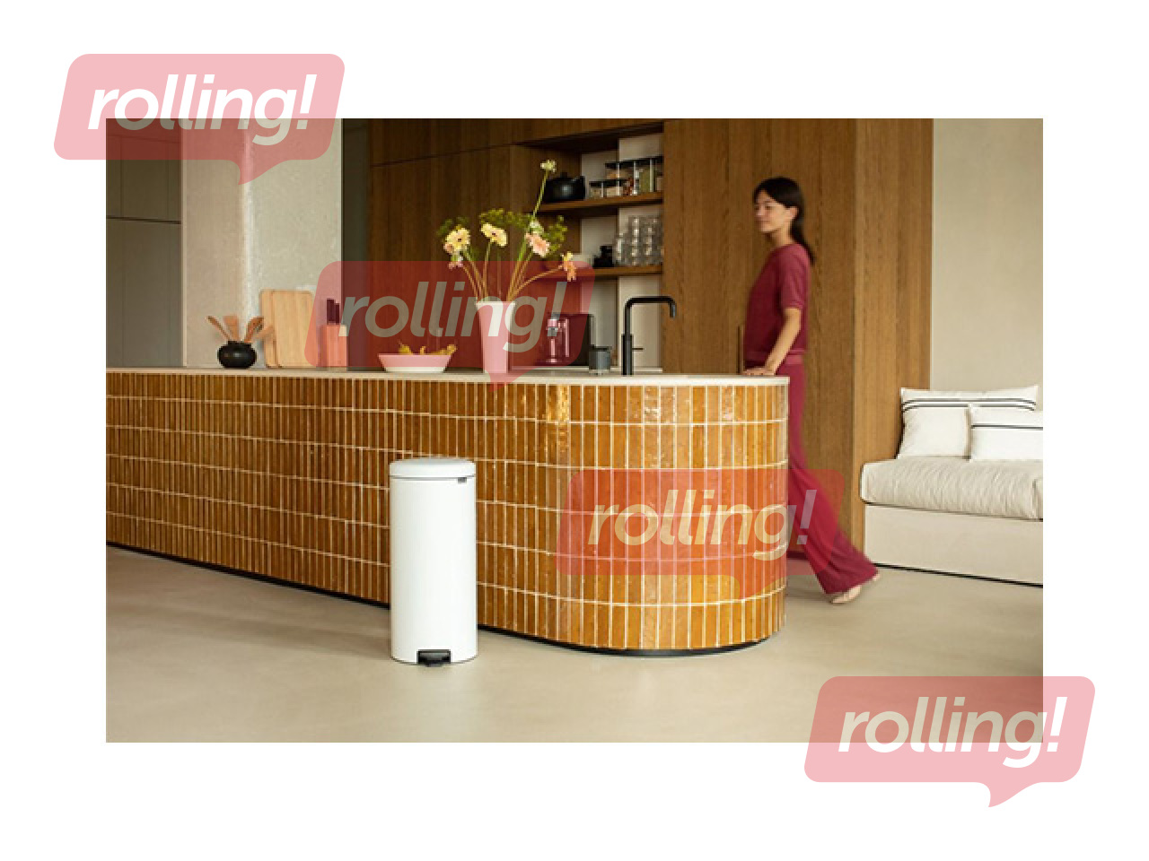 Izturīga, klasiska un ērta lietošanā – Brabantia NewIcon 20 litru atkritumu tvertne ar pedāli ir lieliski piemērota virtuvei, vannasistabai, birojam vai jebkurai citai telpai. Pateicoties klusās aizvēršanās mehānismam, stingrai konstrukcijai un neslīdošai pamatnei šī tvertne ir ērta, droša un viegli kopjama.