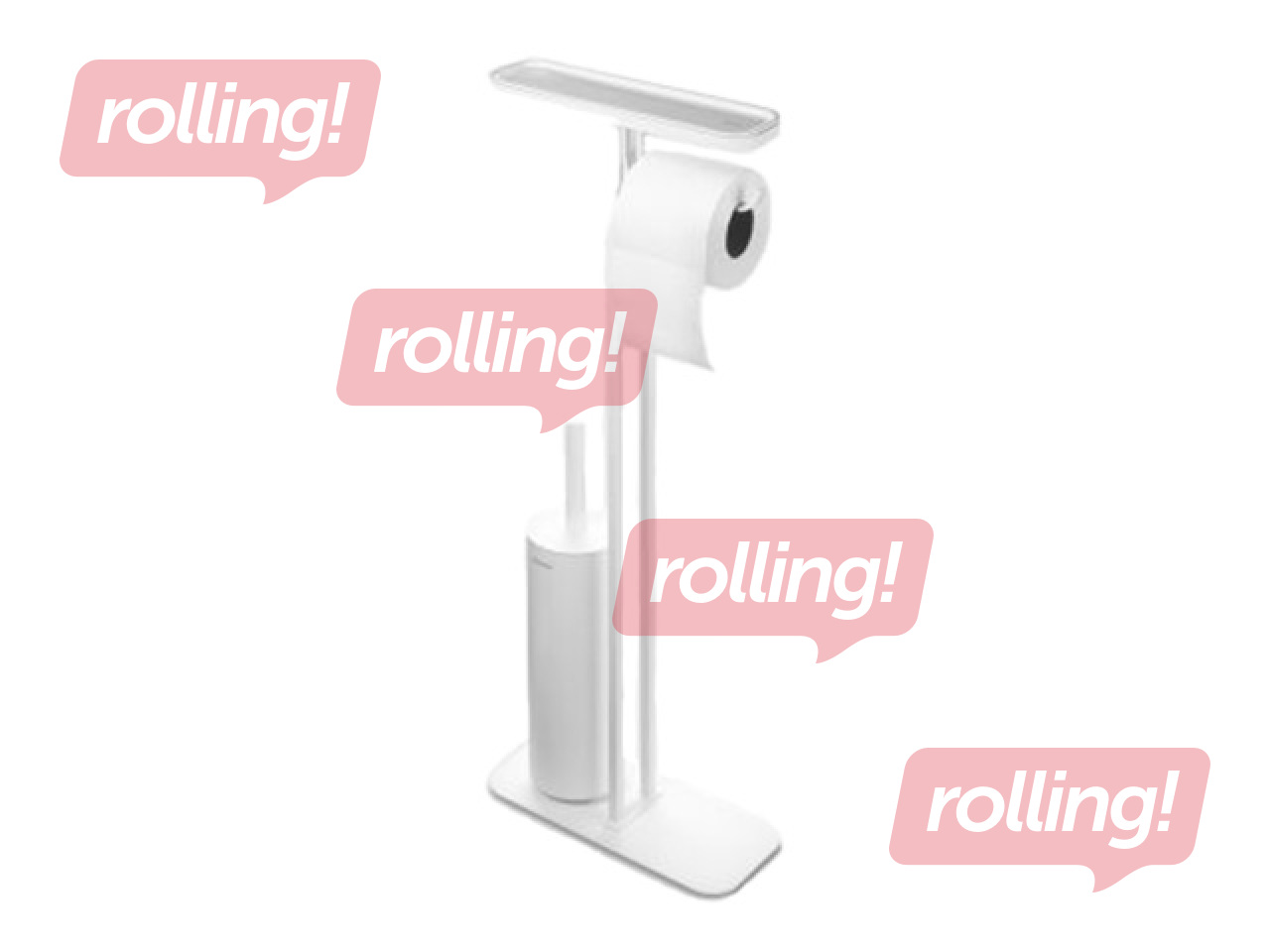 Vairāku funkciju apvienojums vienā statīvā – plaukts, tualetes papīra turētājs un poda birstes statīvs.