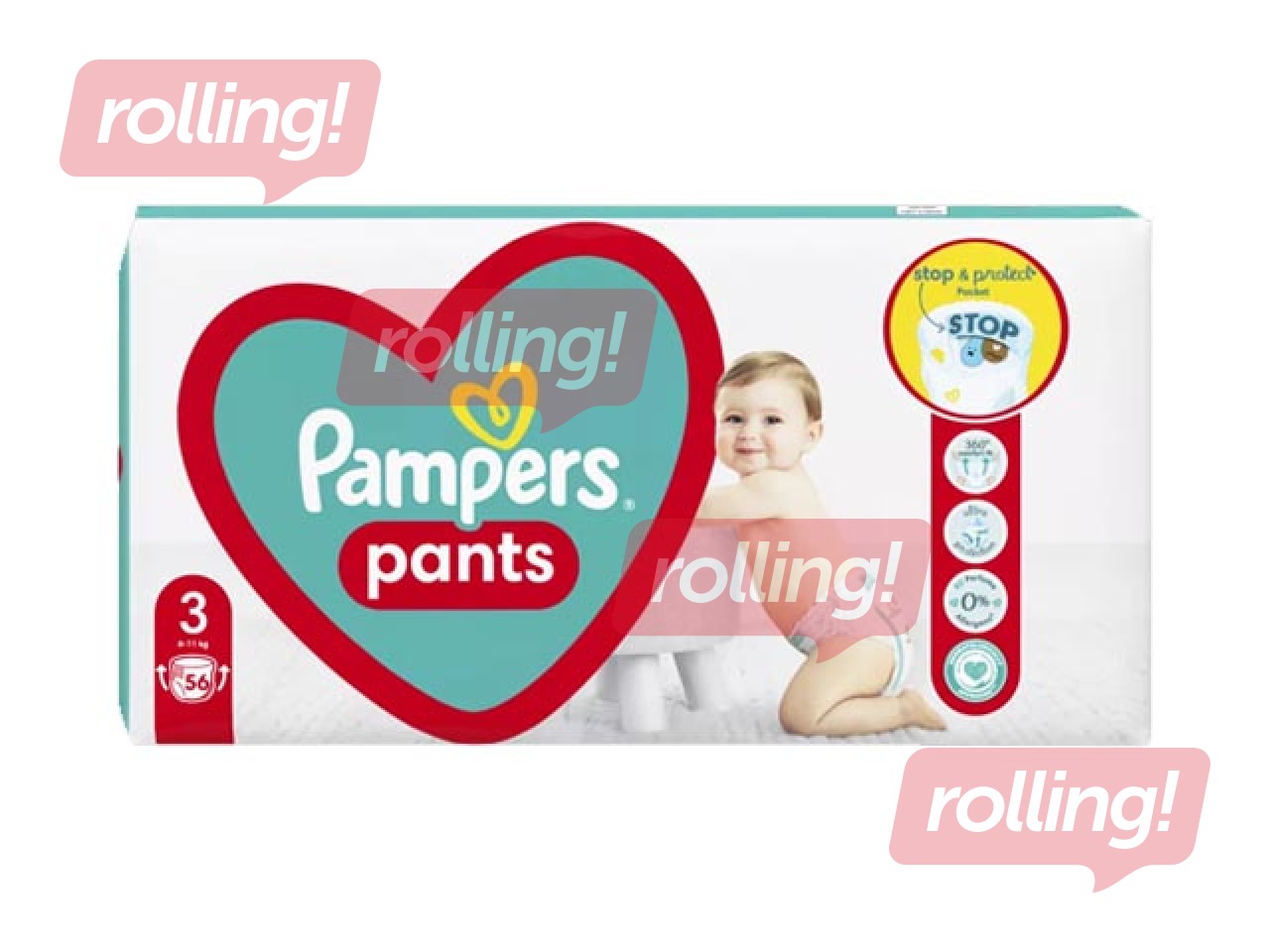 Autiņbiksītes Pampers Maxi Pack 3 (6-11 kg) biksītes, 56 gab.