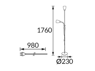 Stilīga un funkcionāla stāvlampa ar divām E27 tipa ligzdām, piemērota lietošanai ar LED vai kompaktajām fluorescences spuldzēm (max 15W). Lampa ir izgatavota no nerūsējošā tērauda un plastmasas. Pateicoties regulējamajam apgaismojuma virzienam, tā piedāvā pielāgojamu apgaismojumu atbilstoši vajadzībām.