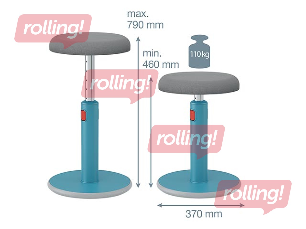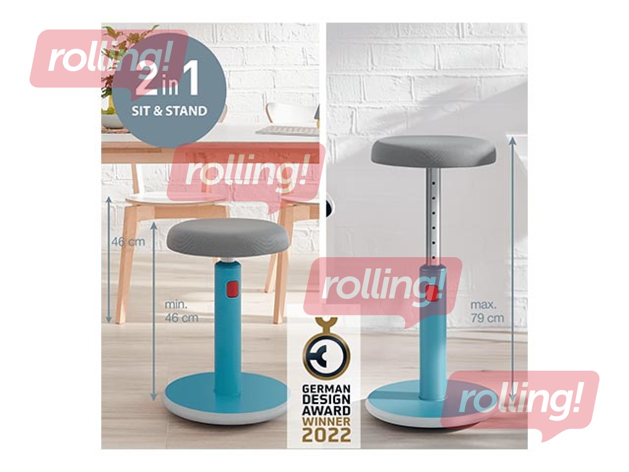 Leitz Ergo Active Sit Stand Stool ļauj elastīgi pārvietoties starp sēdēšanu un stāvēšanu, kamēr strādājat, veicinot muskuļu kustību, uzlabojot stāju un palielinot enerģijas līmeni. 2 vienā, jo jūs varat noregulēt augstumu līdz ideālam sēdekļa augstumam, kas ir līdzīgs biroja krēslam, kā arī līdz perfektam stāvēšanas atbalsta augstumam ar ievērojami lielāku diapazonu nekā citiem standarta krēsliem. Tam ir noapaļota pamatne, kas rosina aktīvas kustības, grozoties un šūpojot, kamēr strādājat, lai stiprinātu muguru. Augstumu var viegli regulēt no 46 līdz 79 cm, un stāvošais ķeblītis saglabāsies izturīgs un stabils jebkurā augstumā. Ērts un praktisks, šim ergonomiskajam krēslam ir elpojošs, ar 3D gaisa sietu pārklāts putu sēdeklis un neslīdoša pamatne, kas nebojā jūsu grīdu. Ar savu minimālisma dizainu un matētām apdares krāsām šis stilīgais stāvošais rakstāmgalda krēsls uzlabos veselību un labsajūtu, bez piepūles izveidojot perfektu aktīvā darba iestatījumu. Apvienojiet to ar citiem Leitz Ergo produktiem, lai izveidotu aicinošu un elastīgu darba vietu, kas ļauj jums kustēties visas dienas garumā.