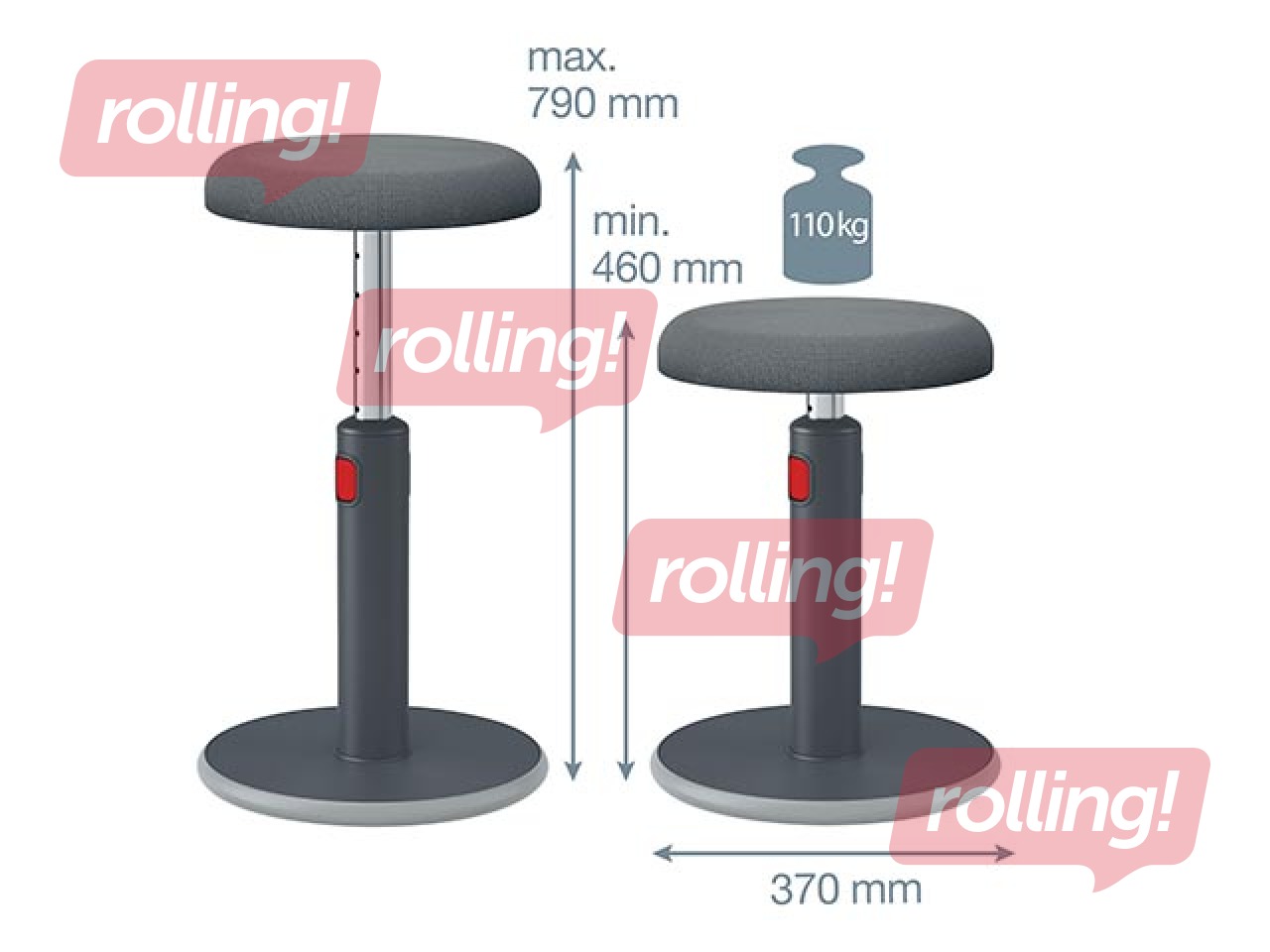Leitz Ergo Active Sit Stand Stool ļauj elastīgi pārvietoties starp sēdēšanu un stāvēšanu, kamēr strādājat, veicinot muskuļu kustību, uzlabojot stāju un palielinot enerģijas līmeni. 2 vienā, jo jūs varat noregulēt augstumu līdz ideālam sēdekļa augstumam, kas ir līdzīgs biroja krēslam, kā arī līdz perfektam stāvēšanas atbalsta augstumam ar ievērojami lielāku diapazonu nekā citiem standarta krēsliem. Tam ir noapaļota pamatne, kas rosina aktīvas kustības, grozoties un šūpojot, kamēr strādājat, lai stiprinātu muguru. Augstumu var viegli regulēt no 46 līdz 79 cm, un stāvošais ķeblītis saglabāsies izturīgs un stabils jebkurā augstumā. Ērts un praktisks, šim ergonomiskajam krēslam ir elpojošs, ar 3D gaisa sietu pārklāts putu sēdeklis un neslīdoša pamatne, kas nebojā jūsu grīdu. Ar savu minimālisma dizainu un matētām apdares krāsām šis stilīgais stāvošais rakstāmgalda krēsls uzlabos veselību un labsajūtu, bez piepūles izveidojot perfektu aktīvā darba iestatījumu. Apvienojiet to ar citiem Leitz Ergo produktiem, lai izveidotu aicinošu un elastīgu darba vietu, kas ļauj jums kustēties visas dienas garumā.