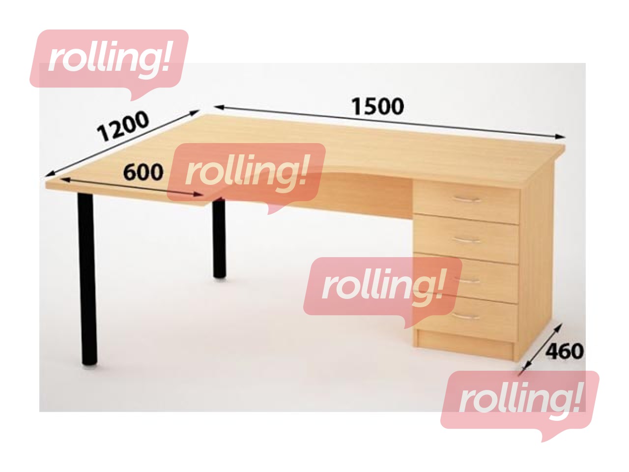 Biroja galds ar 4 atvilktnēm (stūra galds)