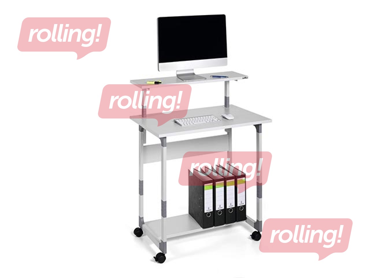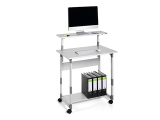 • Elastīga darbstacija ar regulējamu augstumu monitoru un tastatūras plauktiem