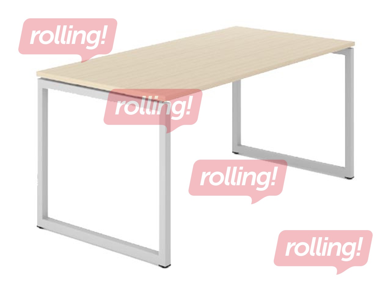 Biroja galds ar metāla rāmi un O kājām, 160 cm, dzintara ozola tonī , metāla sudraba kājas