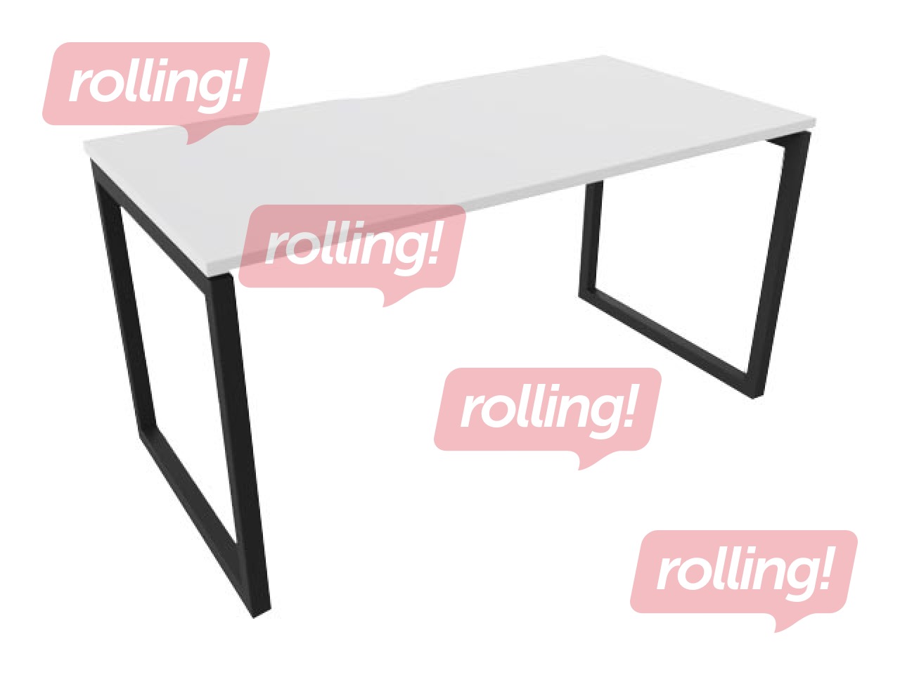 Biroja galds ar metāla rāmi un O kājām, 160 cm, balta tonī , melnas kājas