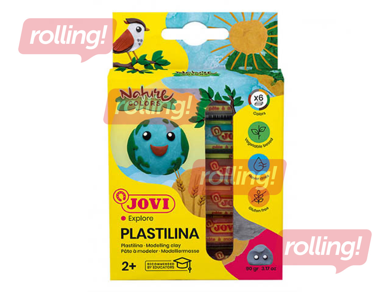 Uz dabīgas augu bāzes, ar dabisku vasku. Bez konservantiem. Ļoti mīksts, viegli ieņem vajadzīgo formu, nesacietē un nežūst. Krāsas perfekti sajaucas viens ar otru. Nesmerē rokas. Drošs, hipoalerģisks. Katras krāsas plastilīna svars- 15 g. Sertificēts bērniem (Eiropas standarts- CE). Ieteicams lietošanai bērniem no 2 gadiem. Ražotājs: JOVI, Spānija. Izgatavots Spānijā.