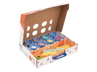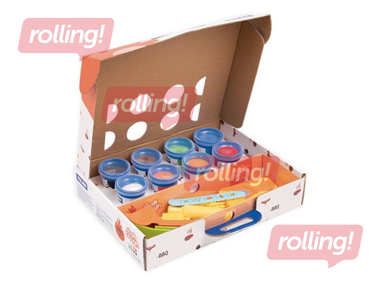 Kviešu miltu bāzes modelējošās masas komplekts Barbecue. Komplekta saturs: 8 kārbas pa 59 g (balta, dzeltena, oranža, sarkana, zila, zaļa, brūna un melna) un 13 instrumenti. Masa ir ļoti mīksta, tāpēc tā ir ļoti piemērota bērnu rociņām. Jaunas krāsas var izveidot, apvienojot divas vai vairākas krāsas. Tas neatstāj atlikumus uz rokām. Augu izcelsmes sastāvdaļas (satur glutēnu).