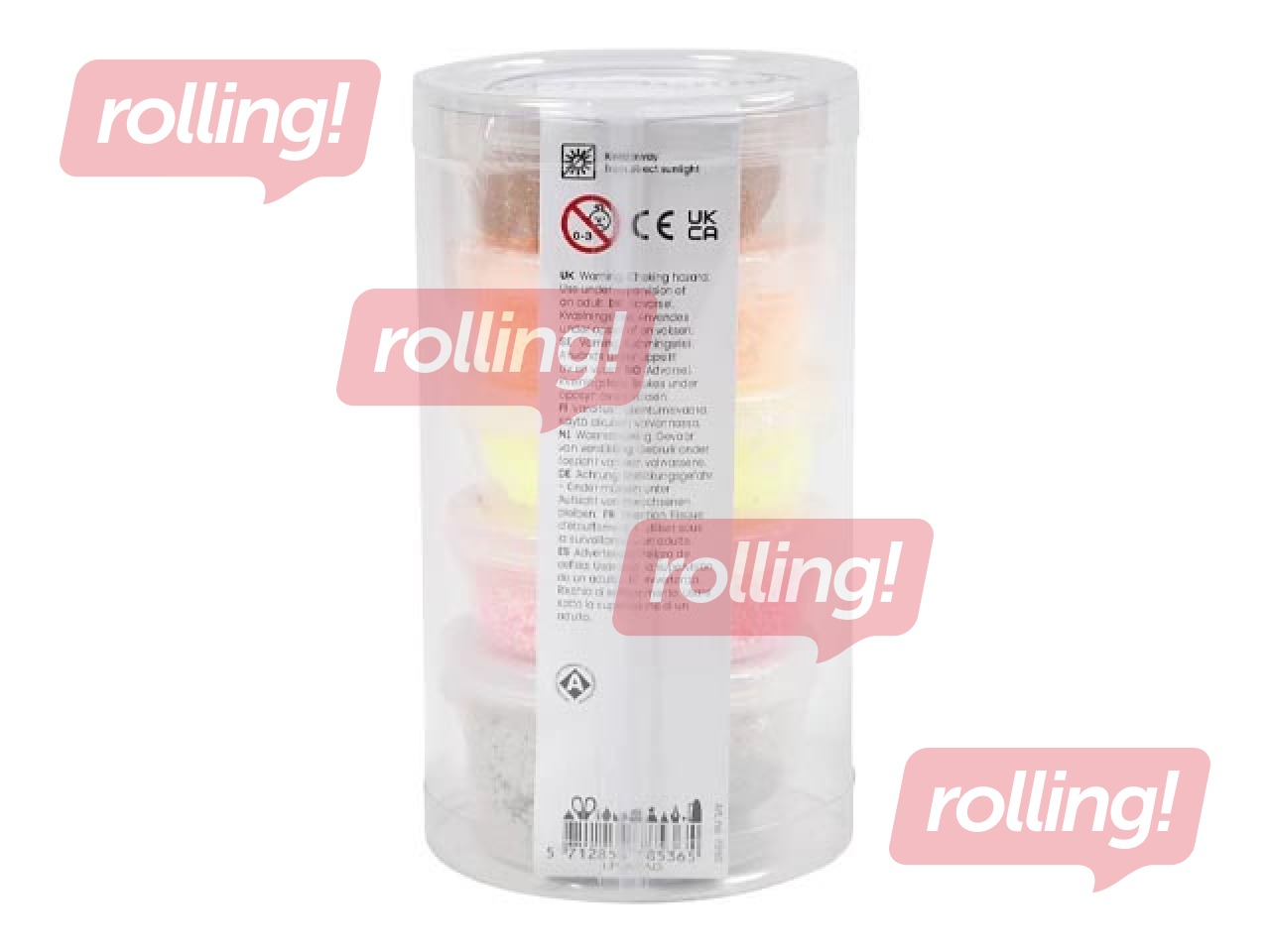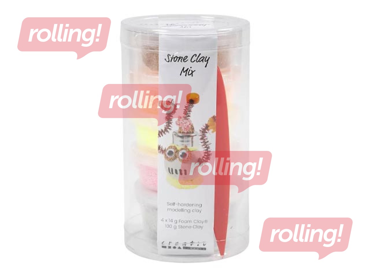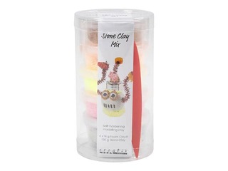 Veido radošas un unikālas figūras ar šo īpašo komplektu, kas apvieno divu veidu materiālus – putu mālu (Foam Clay) un akmens mālu (Stone Clay). Abi materiāli ir pašsacietējoši, kas nozīmē, ka darbiņi nožūs bez cepšanas. Stone Clay ir māls, kas satur īstu akmens pulveri, piešķirot figūrām raupju, akmenim līdzīgu virsmu. Savukārt Foam Clay ir mīksts un elastīgs, kas lieliski piemērots smalkām detaļām un tekstūru radīšanai. Šī kombinācija ļauj bērniem izpausties radoši un veidot visdažādākās figūras ar savu raksturu. Pēc atvēršanas mālu un akmens masu jāuzglabā cieši noslēgtos traukos. Ja materiāls izžūst, to var atjaunot, pievienojot nedaudz ūdens un rūpīgi izmīcot.