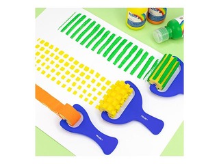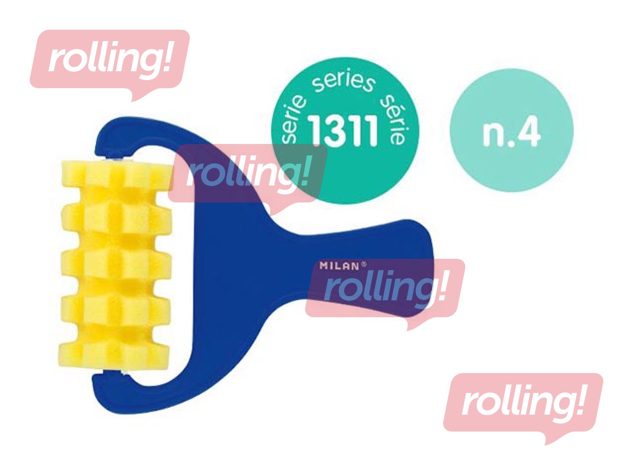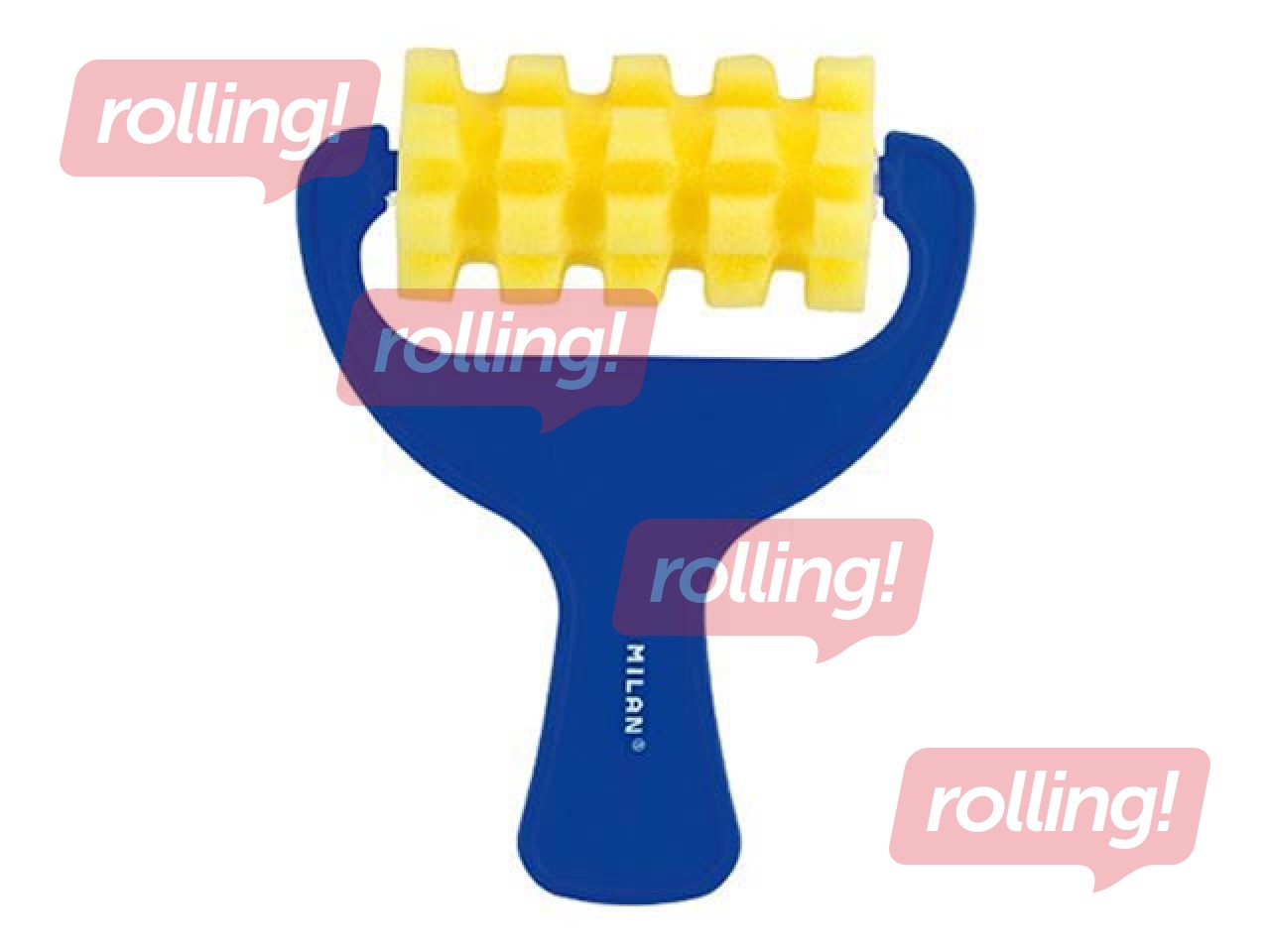 Rievots sūkļa rullītis ar īsu zilu plastmasas rokturi. Piemērots akvareļiem un guaša krāsām. Platums: 70 mm.