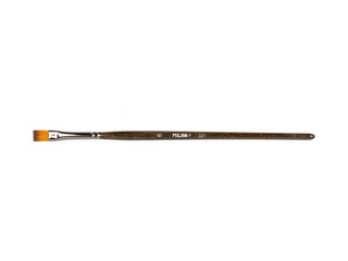Kvalitatīva plakana otiņa ar īsu koka kātiņu un sintētiskām šķiedrām (Ø 0.10mm). Ideāli piemērota akvareļu, akrila, eļļas un citu uz ūdens bāzes balstītu krāsu tehnikām. Kātiņš pārklāts ar aizsargājošu laku, otiņas kopējais garums – 175mm.